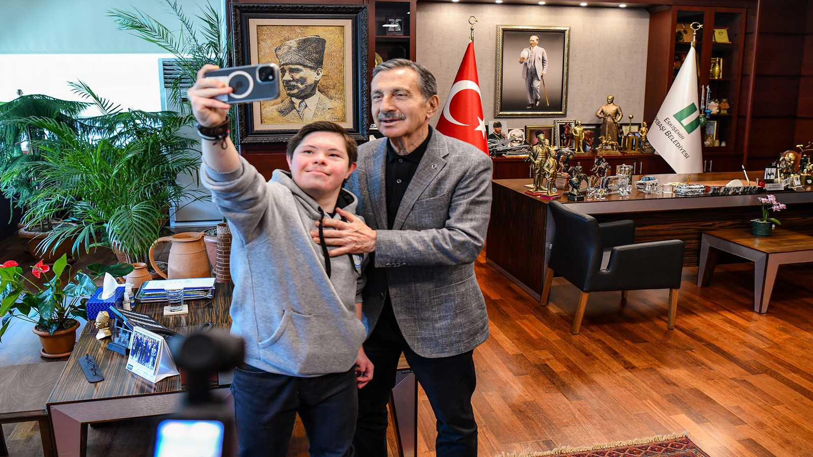 Tepebaşı Belediye Başkanı Ahmet Ataç, 2018 yılından bu yana Mustafa Kemal Atatürk Su Sporları Merkezi’nde antrenmanlara katılan ve Tepebaşı Spor Kulübü özel yüzücülerinden Down Sendromlu Göktan Işın’ı makamında ağırladı.