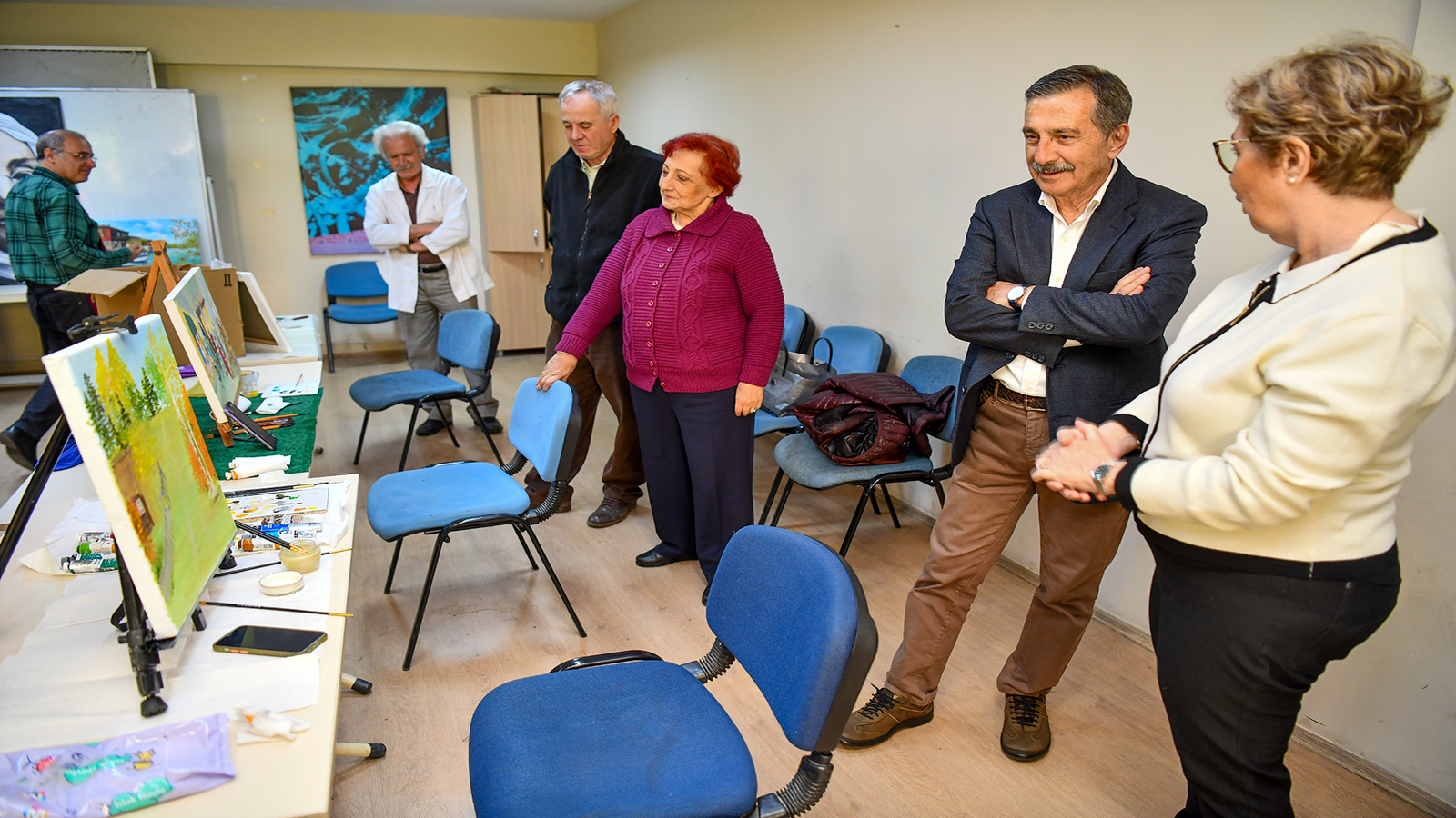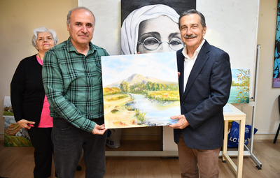 Tepebaşı Belediye Başkanı Dt. Ahmet Ataç, emekli olup resme gönül vermiş vatandaşları ziyaret ederek eserlerini inceledi.