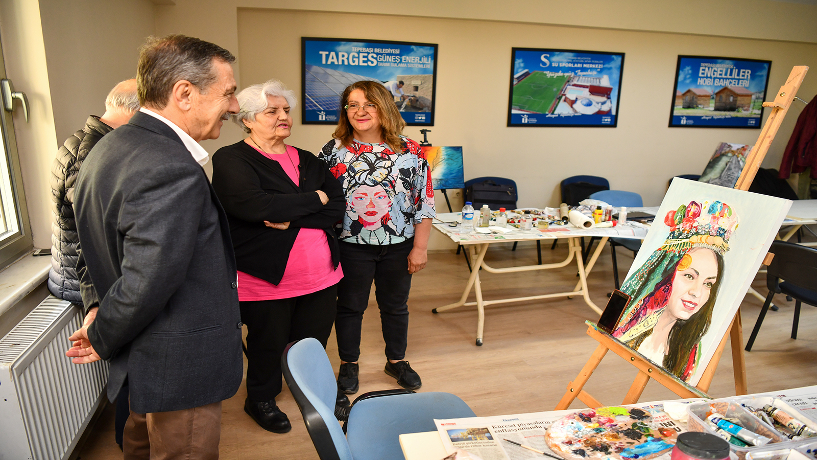 Tepebaşı Belediye Başkanı Ahmet Ataç, 29 Ekim Gençlik Merkezi’nde çalışmalarına devam eden emekli olup resme gönül vermiş vatandaşları ziyaret etti. Yapılan resim çalışmalarını inceleyen Başkan Ataç, Eskişehir’in bir sanat kenti olduğunu belirterek Tepebaşı Belediyesi tarafından düzenlenen Sanat Çalıştayı’ndan bahsetti. Başkan Ataç, Sanat Çalıştayı’nda ortaya çıkan eserlerin belediyenin ve çeşitli birimlerin duvarlarını süslediğini aktardı.