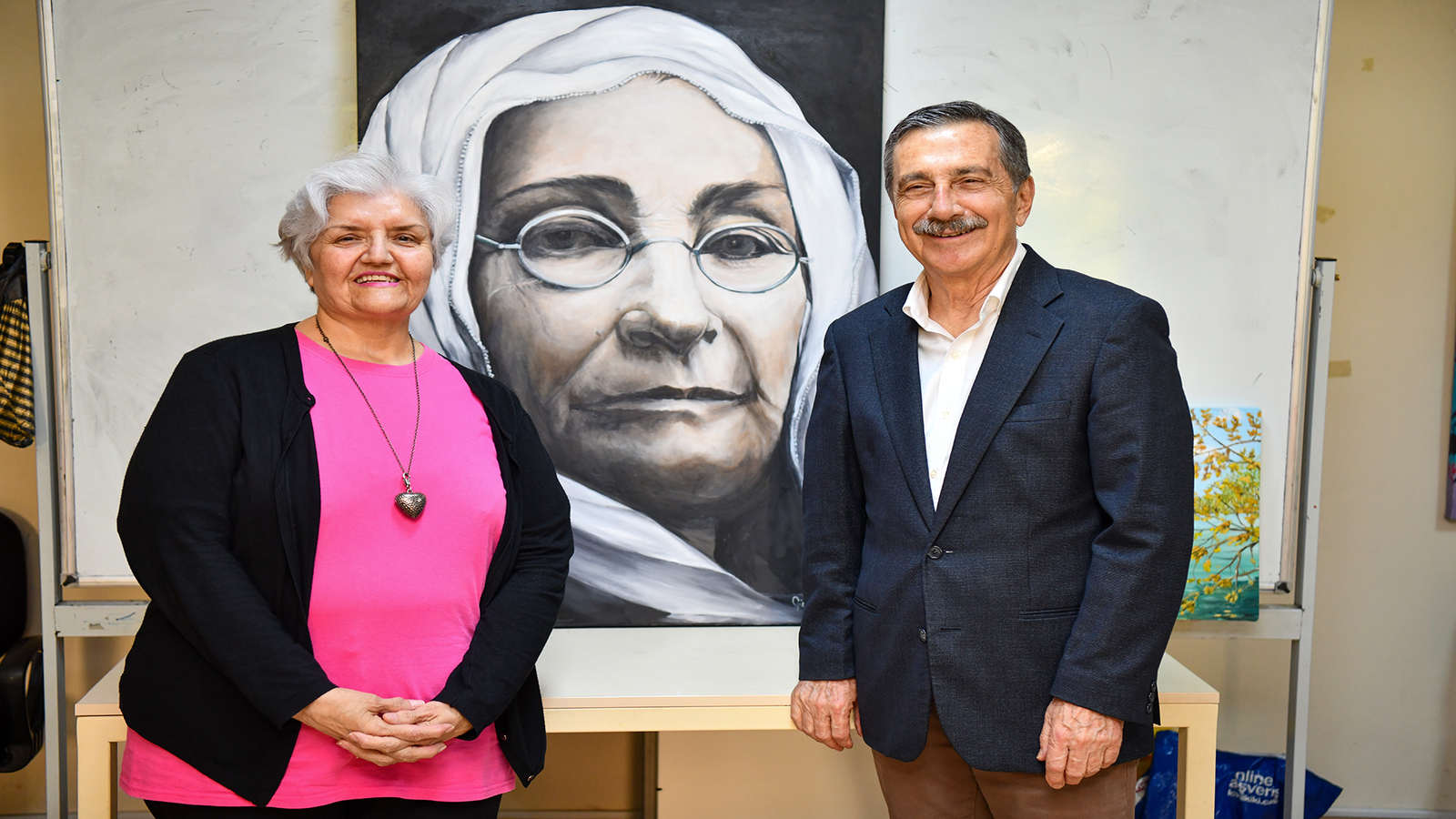Gülümser Doğan Uluçay’ın yapmış olduğu Zübeyde Hanım portresini inceleyen Başkan Ataç, portrenin Zübeyde Hanım Kültür Merkezi’ne yakışacağını söyledi. Uluçay, kendi isteğinin de bu yönde olduğunu belirtti. Öte yandan Ergun Mutlu da yapmış olduğu resim çalışmasını Başkan Ataç’a hediye etti.