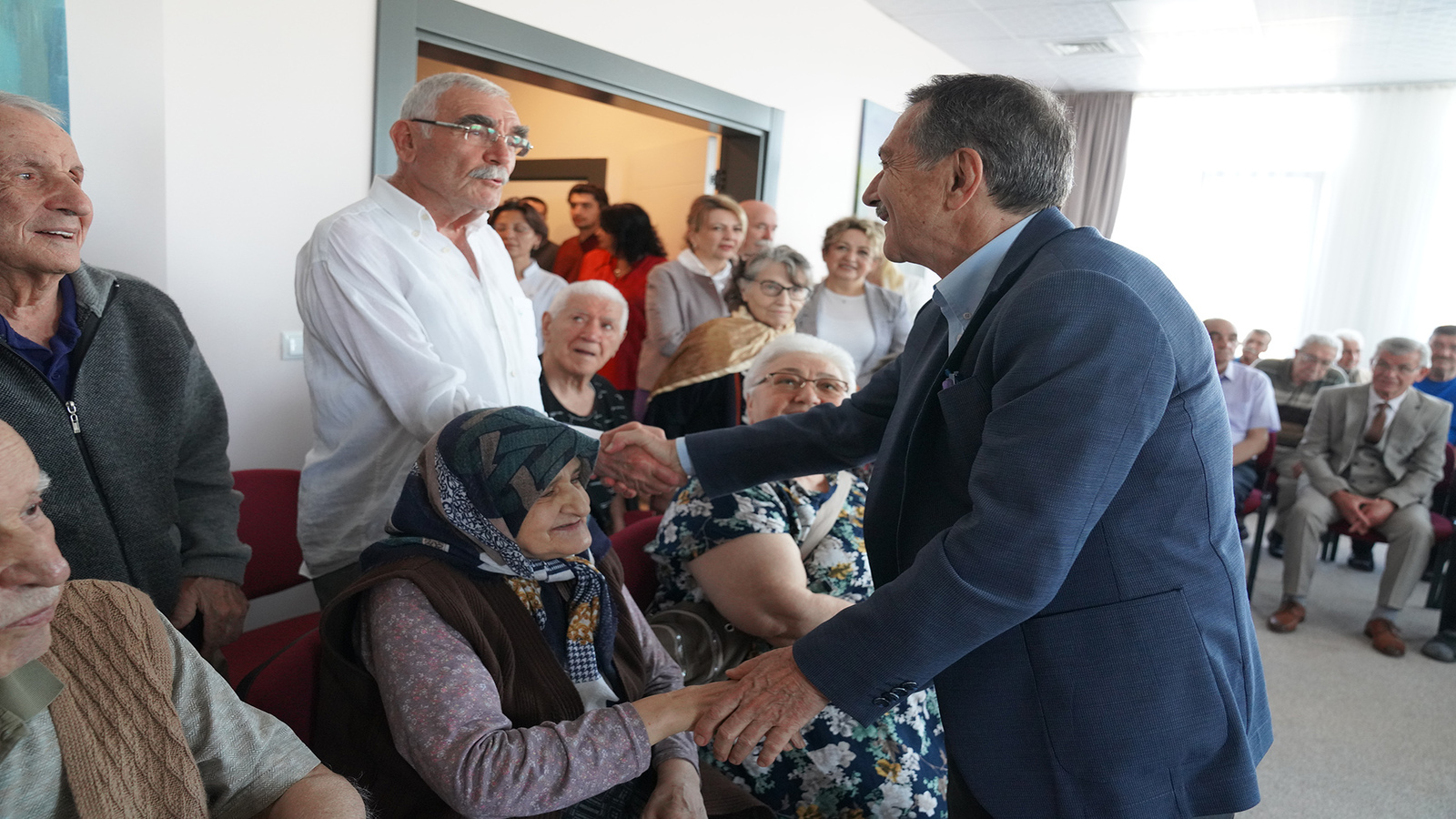 Ardından Metin Özöğüt Yaşam Merkezi’ndeki sakinlerle bir araya gelen Başkan Ataç, deneyimli vatandaşların bayramını tebrik ederek “Sizlere hizmet duaların en büyüğü. Sizlerle burayı paylaşmaktan dolayı son derece memnunuz. Sizlerin burada mutlu ve memnun olmanız hepimizin yüz akıdır. Diliyorum önümüzdeki günlerde aylarda sağlık içinde hep beraber bu güzel mekanın tadını çıkartalım. İyi ki böyle işler yapmışız. Bunlar bizim yüreğimizi serinletiyor. Sizlerle olmak bizleri mutlu ediyor” ifadelerini kullandı.