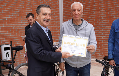 “Bunlardan bir tanesi de belediye çalışanlarımız için 16-22 Eylül Avrupa Hareketlilik Haftası Boyunca "Sen de İşe Bisiklet ya da Scooterınla Gel" etkinliği oldu” diyen Başkan Ataç, “Geçtiğimiz yıllarda da yaptığımız bu etkinlikle personelimizi sürdürülebilir ulaşımı desteklemeye davet ediyoruz. Hafta boyunca araç kullanımını azaltmak; sürdürülebilir ve çevreci ulaşımı desteklemek için işe bisiklet/scooter ile gidip gelen belediye çalışanlarımızı belirledik, her birini gönülden kutluyorum. Bugün dünyaya baktığımızda en sağlıklı araç bisiklet. Trafiğin az olduğu ülkelerde, soğuk havada bile herkes bisiklete biniyor. Toplumun bisiklet kullanma alışkanlığı trafiği yok ediyor. Ayrıca sağlık, ekonomi, sosyalleşme gibi alanlarda da fayda sağlıyor. Her fırsatta söylüyorum; 4 teker bedeninizi, 2 teker ruhunuzu taşır. Bizim çocukluğumuzda Eskişehir’in her yerinde çok sayıda bisiklet vardı. Hatta Demiryolları, Şeker Fabrikası iş çıkışlarında inanılmaz bir bisiklet seli olurdu. Hafta boyunca mesaiye bisiklet ya da scooterı ile gelen 16 çalışma arkadaşımıza bugün sertifika ve ödüllerini takdim edeceğiz. Sürdürülebilir ulaşımı destekleyen tüm arkadaşlarımı tekrar tebrik ediyorum” ifadelerini kullandı.
