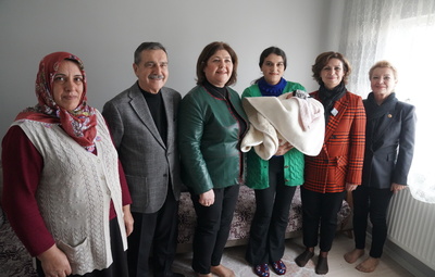 Başkan Ataç ve beraberindeki heyet, Sude ve Ersin Çeler çiftini evlerinde ziyaret ederek bebek sahibi olmalarından dolayı kutladı. Erhan Kadir bebeği kucağına alan Başkan Ataç, aile büyükleri ile de sohbet etti. Başkan Ataç, “Çocuk sahibi olmak çok büyük bir mutluluk kaynağı. Sizi de bu mutluluğu yaşadığınız için tebrik ediyorum. Diliyorum ki tüm bebeklerimiz, çocuklarımız sağlıklı şekilde büyürler. Biz de yeni canımızdan kıymetli evlatlarımıza daha güzel bir gelecek hazırlamak adına durmadan çalışmaya devam edeceğiz” dedi.