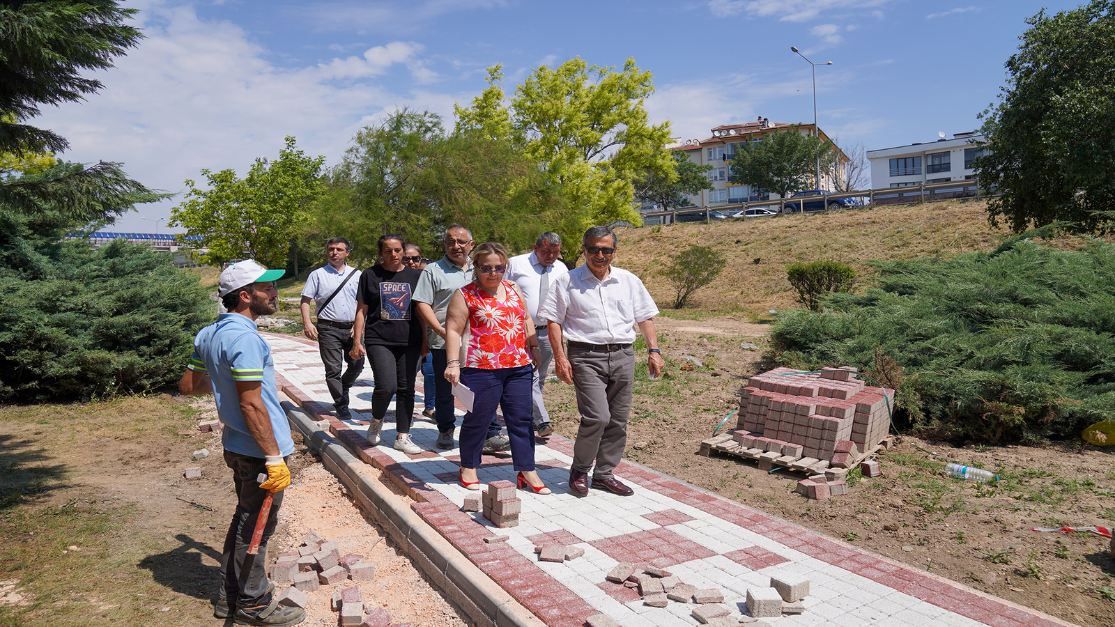 Yenileme çalışmalarının sona geldiği parktaki incelemede Başkan Ataç’a Başkan Yardımcısı Nuray Çayır da eşlik etti.