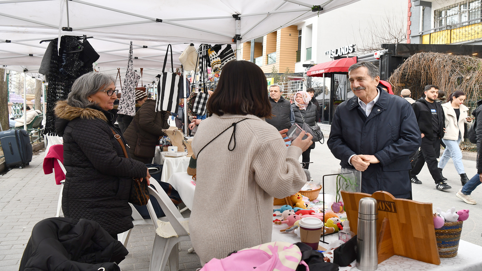 Tepebaşı Belediye Başkanı Dt. Ahmet Ataç, Eskişehir Üreten Kadınlar Platformu tarafından Adalar mevkiinde açılan stantları gezerek kadınlara bol kazançlı günler diledi.
