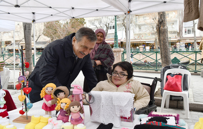 Başkan Ataç, Eskişehir Üreten Kadınlar Platformu tarafından 650 üretici kadının Adalar mevkiine açtığı stantları ziyaret etti. Her bir stantta üretici kadınlarla sohbet eden Başkan Ataç, her birine bol kazançlar diledi. Kadınların ürettiklerini kazanca dönüştürerek ev ekonomilerine katkı sunmalarının çok önemli olduğunu belirten Başkan Ataç, “Biz Tepebaşı Belediyesi olarak her zaman kadının yanındayız. Onların üretmeleri, ürettiklerini kazanca çevirmeleri kendilerinden çok bizleri mutlu ediyor. 2016 yılında hizmete açtığımız Hanımeli Sokak’ta da kadınlarımız el emeklerini sergileyip, satış yaparak ev ekonomilerine katkı sunuyor. Bu anlamda kadınlarımızı desteklemeye devam edeceğiz” dedi.