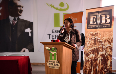 Panayırda Tepebaşı Kırsal Kalkınma Kurulu Başkanı Mehmet Kızılinler moderatörlüğünde, Eskişehir Aşçılar Derneği Başkanı Kemal Kaya, Lokantacılar ve Kasaplar Odası Başkanı Bahar Bilen, Ticaret Borsası Genel Sekreteri Gültekin Güler ve Ekolojik Köy Kızılinler Kadın Kooperatifi Üyesi Sevinç Serhan tarafından “Coğrafi işaretlemenin önemi ve Kızılinler bal kabağı topraktan kabağa, kabaktan tabağa” konulu söyleşi gerçekleştirildi.