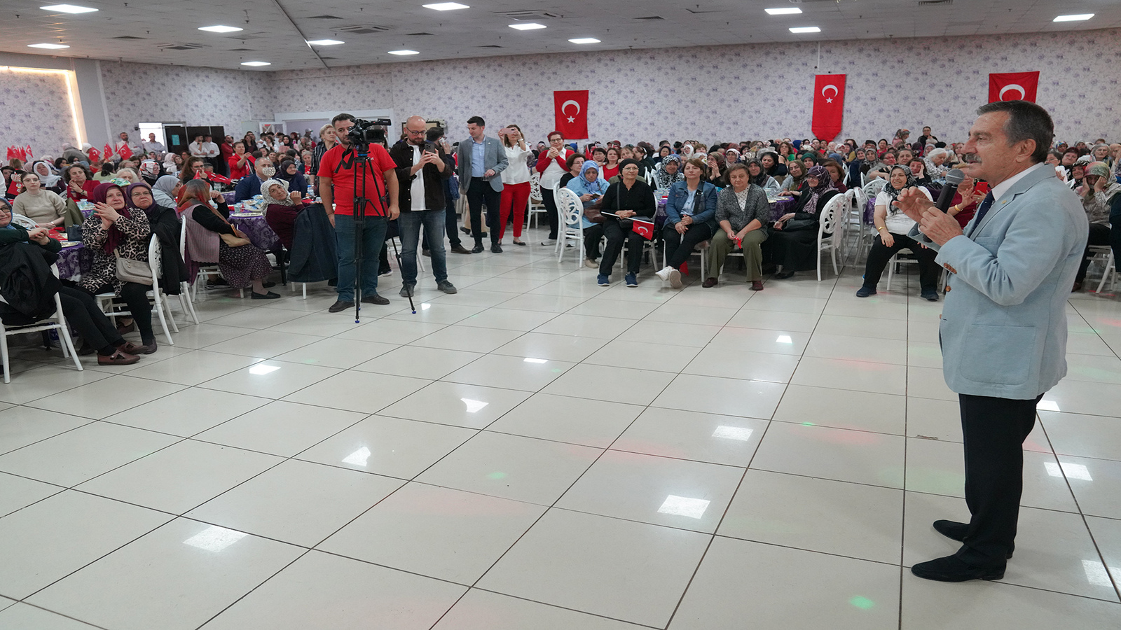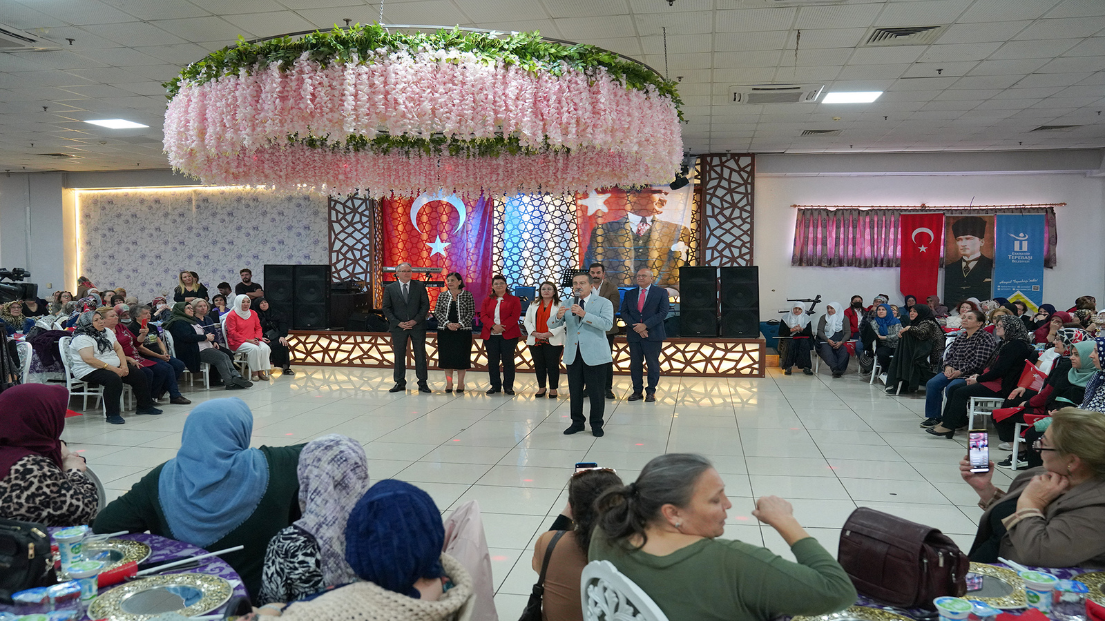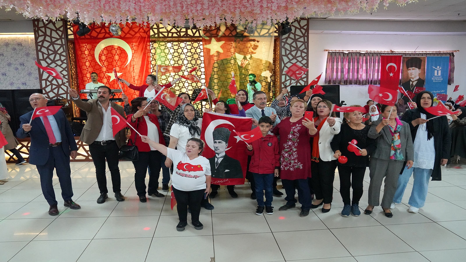 Tepebaşı Belediye Başkanı Dt. Ahmet Ataç, Cumhuriyetimizin 100. yılı dolayısıyla düzenlenen kutlama programında yaklaşık bin 500 Belde Evi kursiyeri kadın ile bir araya geldi. Programda Türk Bayrakları ile Başkan Ataç’ın eşliğinde marşlar söyleyen kadınlar, Cumhuriyetin 100. yaşını coşku ile kutladı.