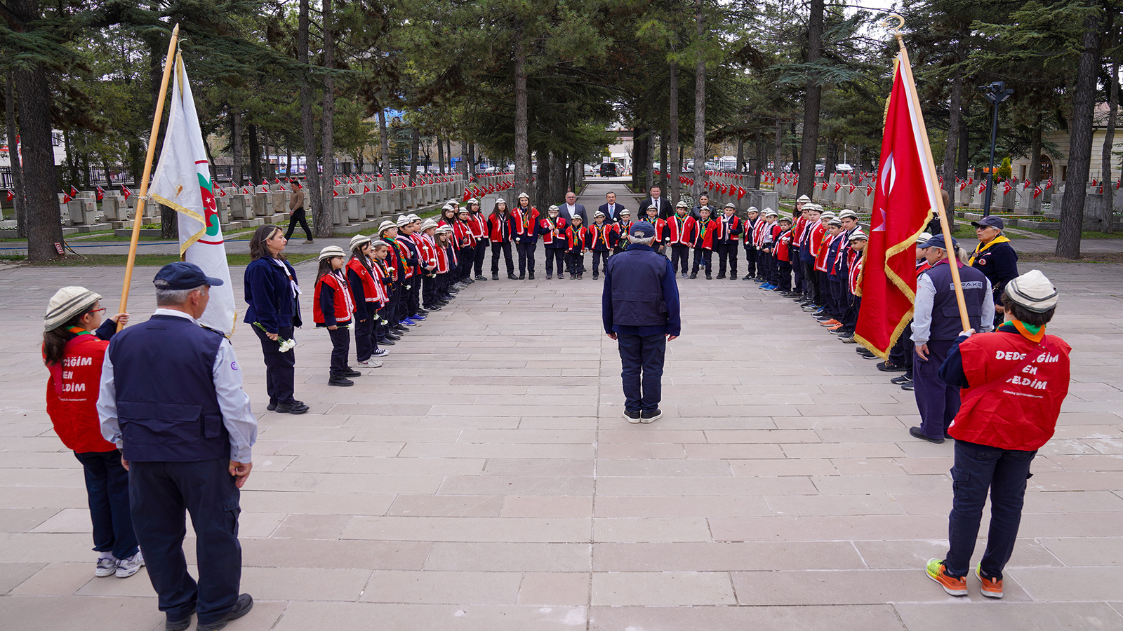 BAŞKAN ATAÇ VE MİNİK İZCİLERDEN ŞEHİTLİK ZİYARETİ