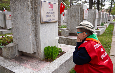 Minik izciler, Hava Şehitliği ziyaretinin ardından Kanlıpınar Şehitliğini de ziyaret ederek vatan uğruna şehit düşen kahraman askerler anısına dua ederek karanfil bıraktı.