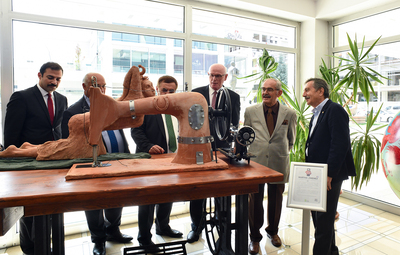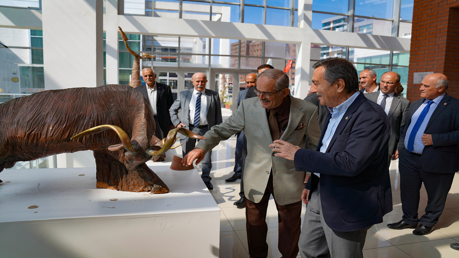 Belediye hizmet binasının ardından ise başkanlar, bu yıl 16. kez düzenlenen Pişmiş Toprak Sempozyumu’nda 21 misafir sanatçı ve sempozyum komitesinin el ele emek vererek cumhuriyetin 100’üncü yıl anısına ortaya çıkan anıtı ziyaret etti. Başkanlar, ortaya çıkan eserin Eskişehir’e ve Türkiye’ye yakıştığını belirtti.