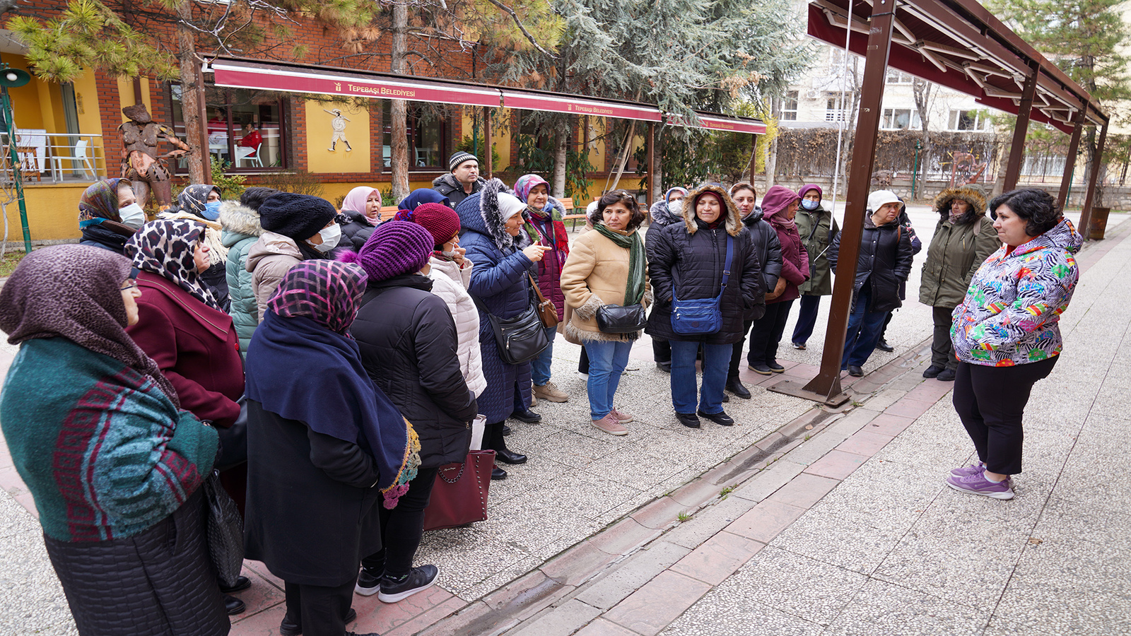 Tepebaşı Belediyesi Belde Evi sakinleri, belediye çalışmalarının tanıtıldığı hizmet turları ile merkezleri ve çalışmaları yerinde görüyor. Projeler hakkında bilgi sahibi olan vatandaşlar, Başkan Ataç’a teşekkür ediyor.