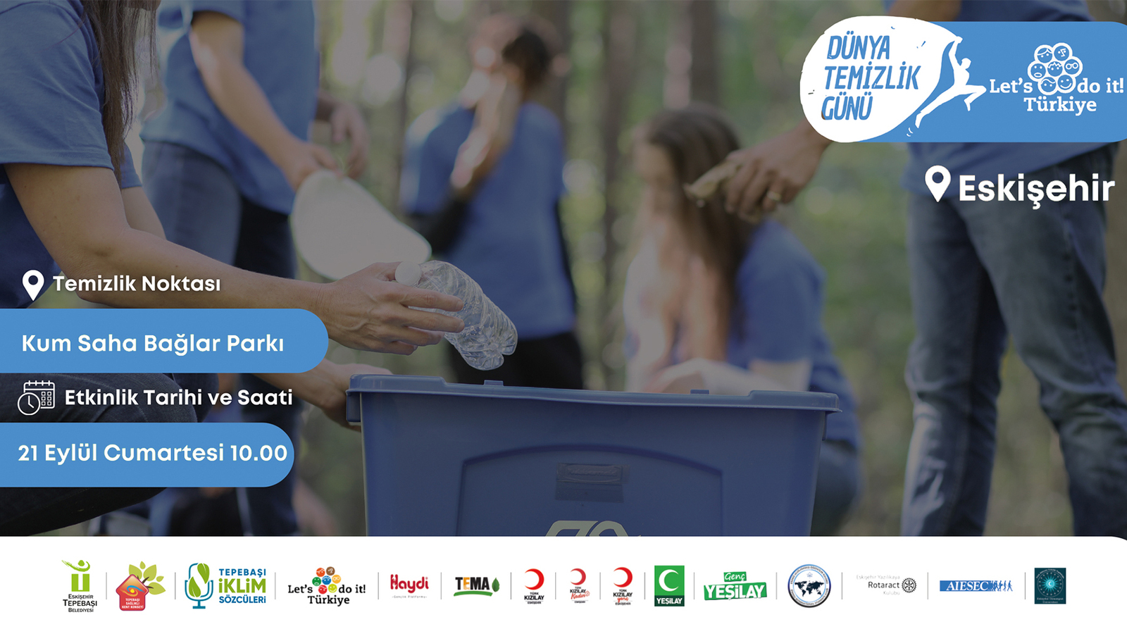 Tepebaşı Belediyesi tarafından Dünya Temizlik Günü dolayısıyla düzenlenecek etkinlikte, doğaseverler bir araya gelerek Eti Caddesi’nde bulunan Kum Saha Bağlar Parkı'nı temizleyecek.
