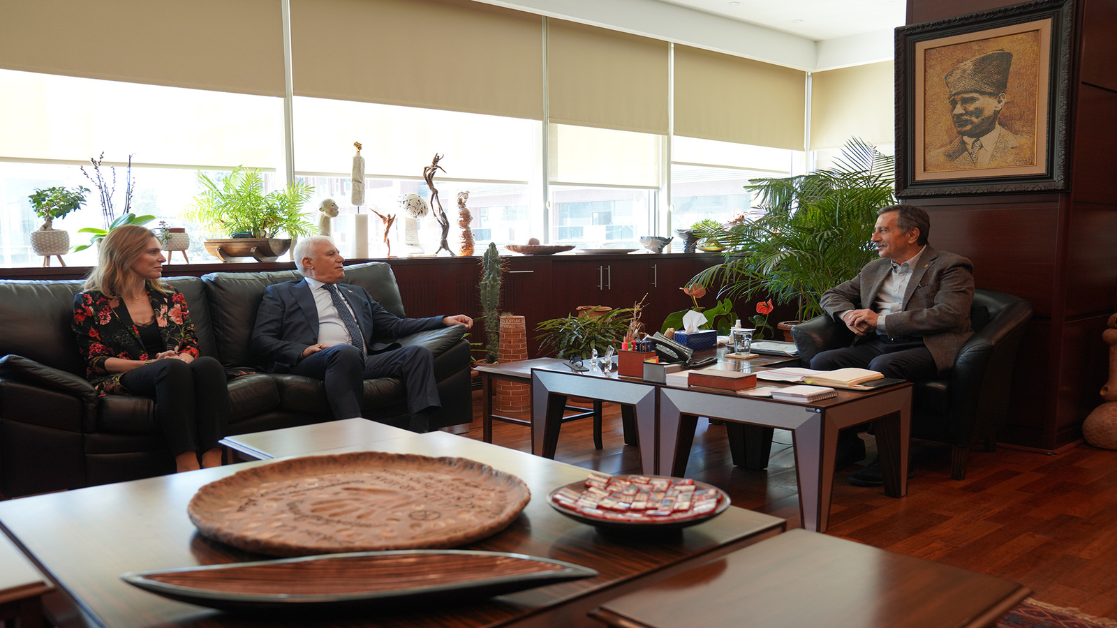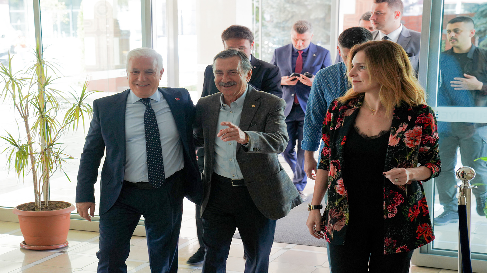 Son olarak Bursa Büyükşehir Belediye Başkanı Mustafa Bozbey ve eşi Seden Bozbey, Başkan Ataç’ı makamında ziyaret etti. Ziyarette Başkan Bozbey ve Ataç, yerel yönetimler ve belediyecilik hizmetleri üzerine görüş alışverişinde bulundu. Bursa Büyükşehir Belediyesi’nin gerçekleştirdiği çalışmalardan da bahseden Bozbey, misafirperverliğinden ötürü Ataç’a teşekkür etti.