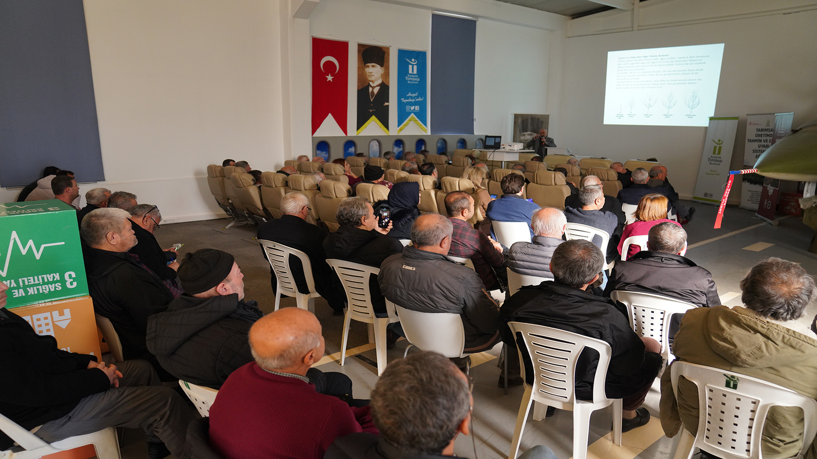 Ayrıca Tepebaşı Belediyesi’nin Eskişehir’de ilk defa uygulanan Tarımsal Üretimde Tahmin ve Erken Uyarı Sistemleri Projesi hakkında üreticilere detaylı bilgiler verildi ve üreticiye sağlayacağı faydalardan bahsedildi. Eskişehir’de ilk defa uygulanan proje kapsamında; Tepebaşı’nda tarımsal faaliyet gösterilen 477 bin 769 dekar alanı kapsayacak şekilde 5 mahallede istasyonlar kuruldu. Ayrı iklimsel özelliklere sahip Beyazaltın, Cumhuriyet, Kavacık, Yusuflar ve Takmak mahallelerinde kurulan Tarımsal Tahmin ve Erken Uyarı İstasyonları, tüm Tepebaşı kırsalına hizmet verecek.