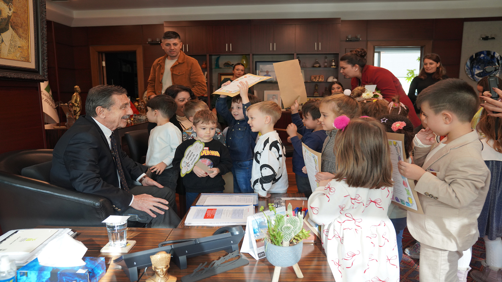 Tepebaşı Belediye Başkanı Dt. Ahmet Ataç’ın, 20 Kasım Dünya Çocuk Hakları Günü nedeniyle minik misafirleri vardı. Tepebaşı Belediyesi Sabiha Gökçen Erken Çocukluk Oyun Merkezi öğrencileri, Başkan Ataç’ı makamında ziyaret ederek, çiçek takdim ettiler, hazırladıkları pankartları gösterdiler. Başkan Ataç ise çocuklarla sohbet ederek, haklarını anlattı.