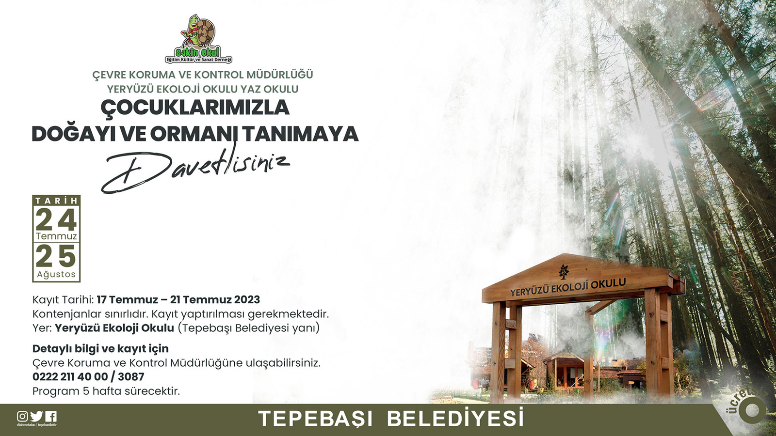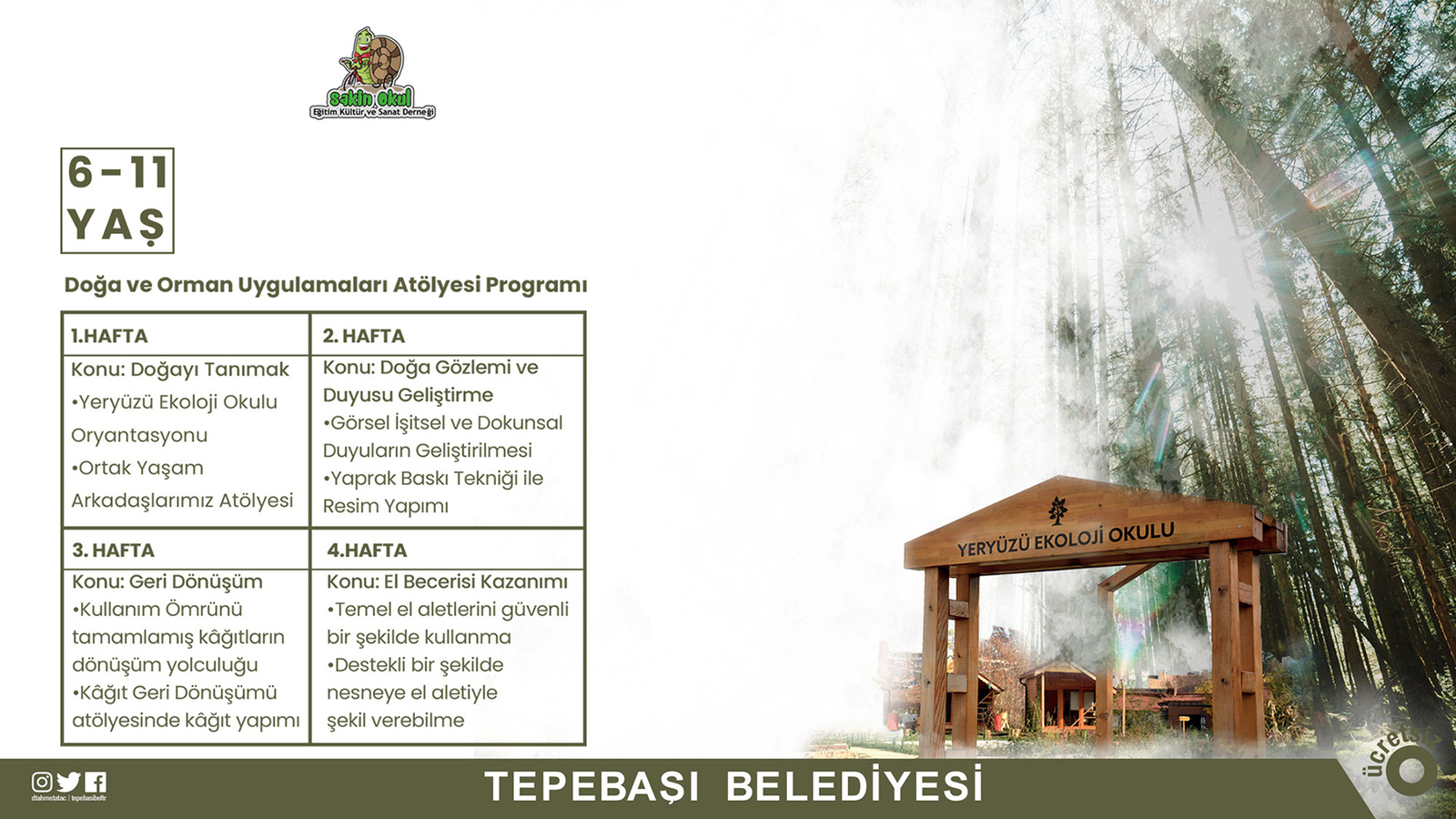 Tepebaşı Belediyesi Yeryüzü Ekoloji Okulu, 6-11 yaş arası çocuklar için düzenlenecek olan 5 haftalık Doğa ve Orman Uygulamaları Atölyesi’ne ev sahipliği yapacak.