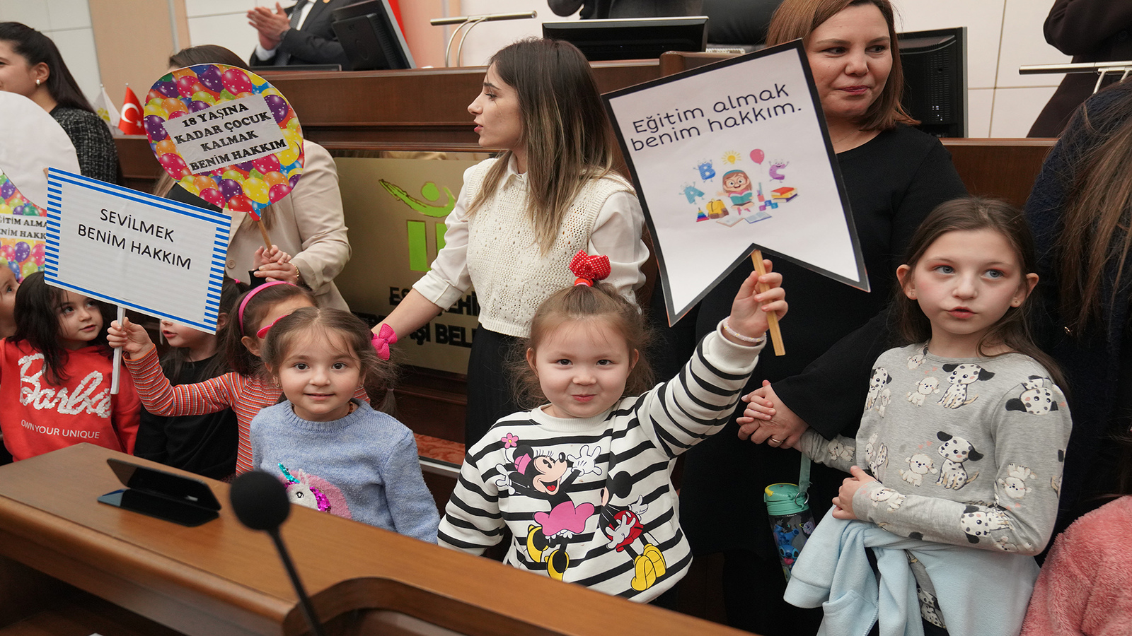 Meclis Salonu’nda gerçekleştirilen toplantıya Tepebaşı Belediyesi bünyesindeki erken çocukluk oyun merkezlerindeki çocuklar da katıldı. Minikler, 20 Kasım Çocuk Hakları Günü dolayısıyla hazırladıkları “Özgürce oynamak benim hakkım, çocuğum haklarım var, sevilmek benim hakkım” yazılı dövizlerle çocuk haklarına dikkat çekti. Çocuklar, Tepebaşı Belediye Başkanı Ahmet Ataç ve tüm meclis üyeleri tarafından ayakta alkışlandı. Toplantıda ayrıca çocuk haklarının anlatıldığı kısa bir video da izletildi.