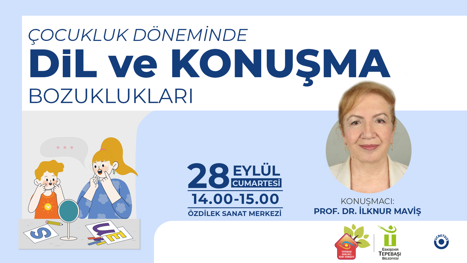 Bu kapsamda düzenlenecek panele konuşmacı olarak katılacak Prof. Dr. İlknur Maviş, “Çocukluk Döneminde Dil ve Konuşma Bozuklukları” konusunu anlatacak. Panel, 28 Eylül Cumartesi günü 14.00-15.00 saatleri arasında Özdilek Sanat Merkezi’nde gerçekleştirilecek. Panele, tüm Eskişehirliler davet edildi.