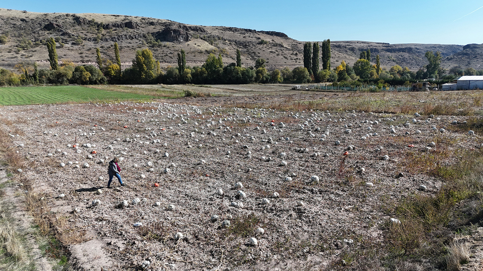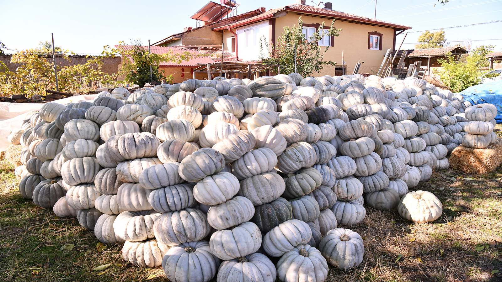 Hasadı yapılan bal kabakları, bu yıl 3’üncüsü düzenlenecek Kızılinler Bal Kabağı Panayırı’nda sergilenmeyi bekliyor.