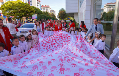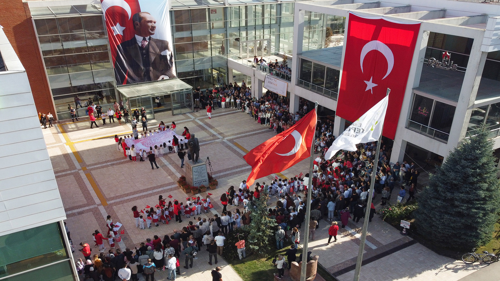 Şenlik havasında coşkuyla geçen 29 Ekim Cumhuriyet Bayramı töreninde Başkan Ataç, yeryüzü ekoloji okulundan belediye önüne öğrenciler ile kortej halinde geldi. Kortejde çocukların el izleriyle yapılan bayrak ise beğeni topladı. Çocukların el izleri ile yapılan bayrak ise belediye binasına asıldı.