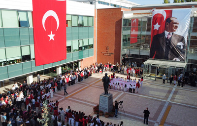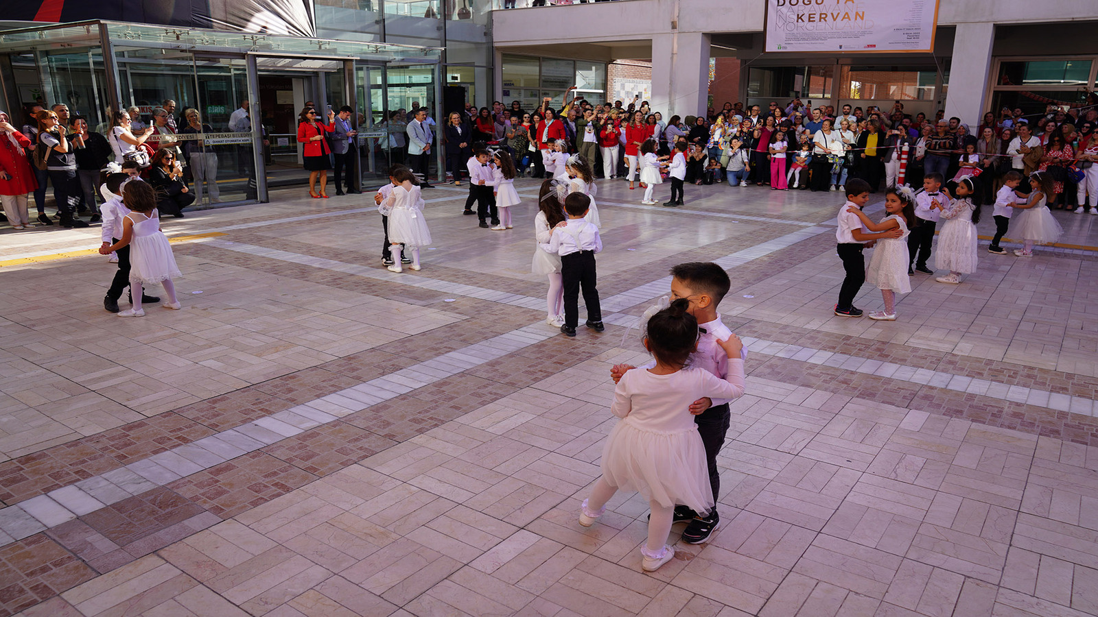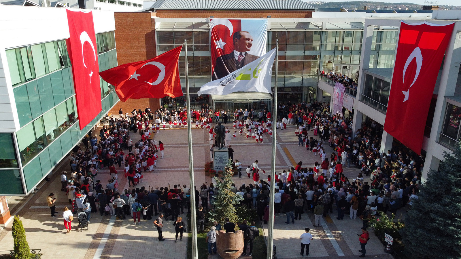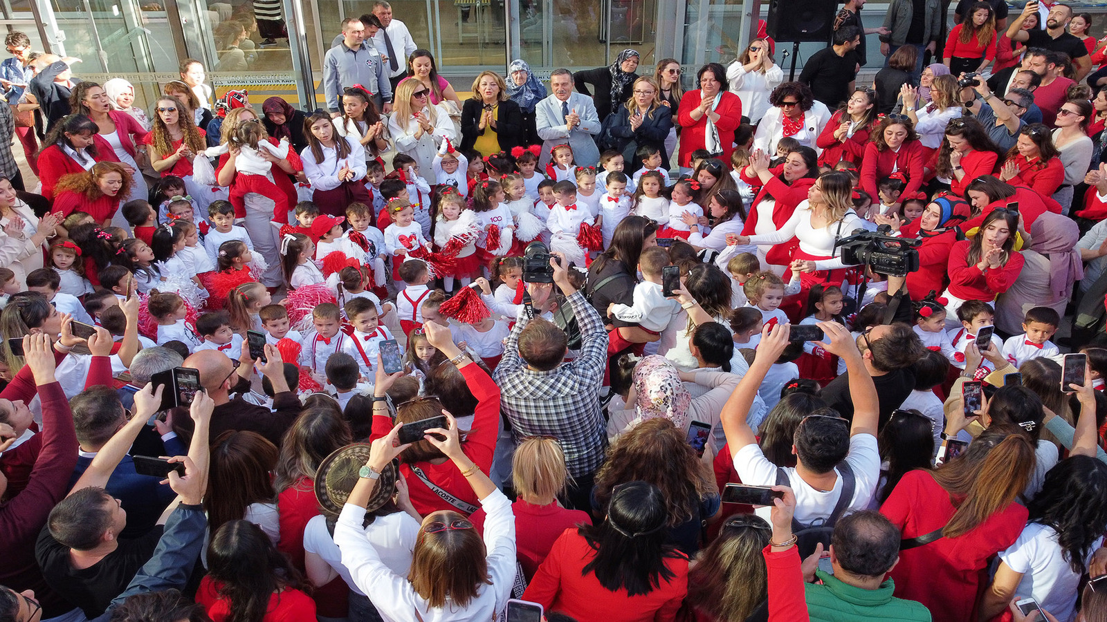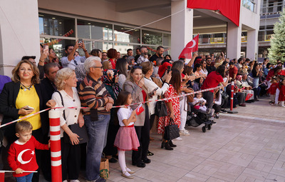 Daha sonra minik öğrenciler, başta vals olmak üzere birçok gösteri sahneledi. Başkan Ataç, çocuklar ve veliler, hep bir ağızdan marşlar söyleyerek 100. yıl coşkusunu yaşadı.
