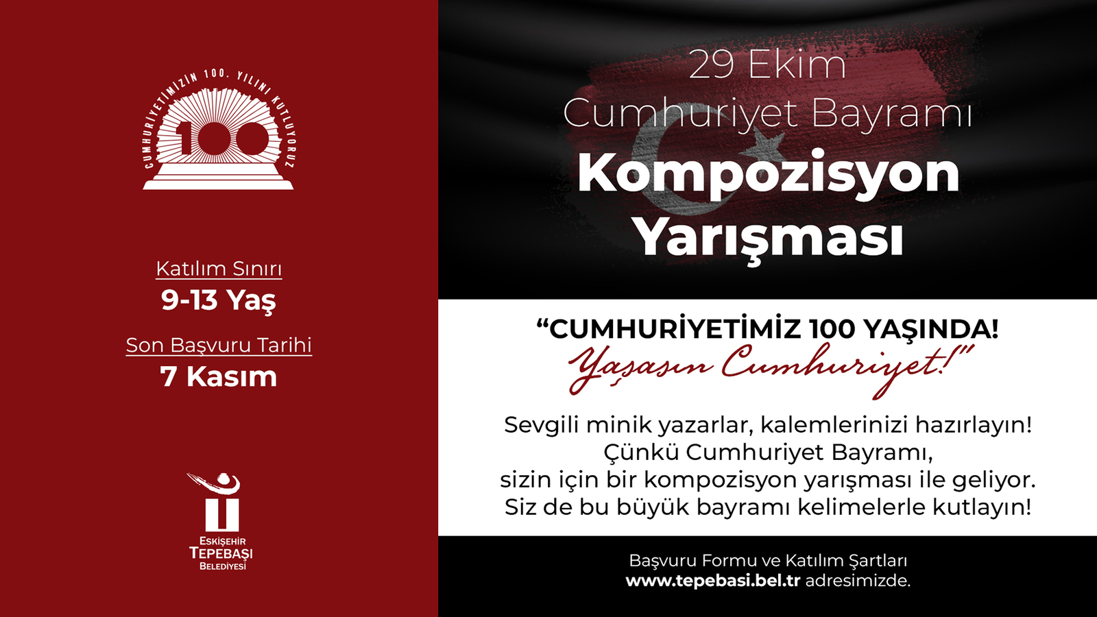 Tepebaşı Belediyesi 29 Ekim Cumhuriyet Bayramı dolayısıyla ‘Cumhuriyetimiz 100 Yaşında’ sloganıyla kompozisyon yarışması düzenliyor.