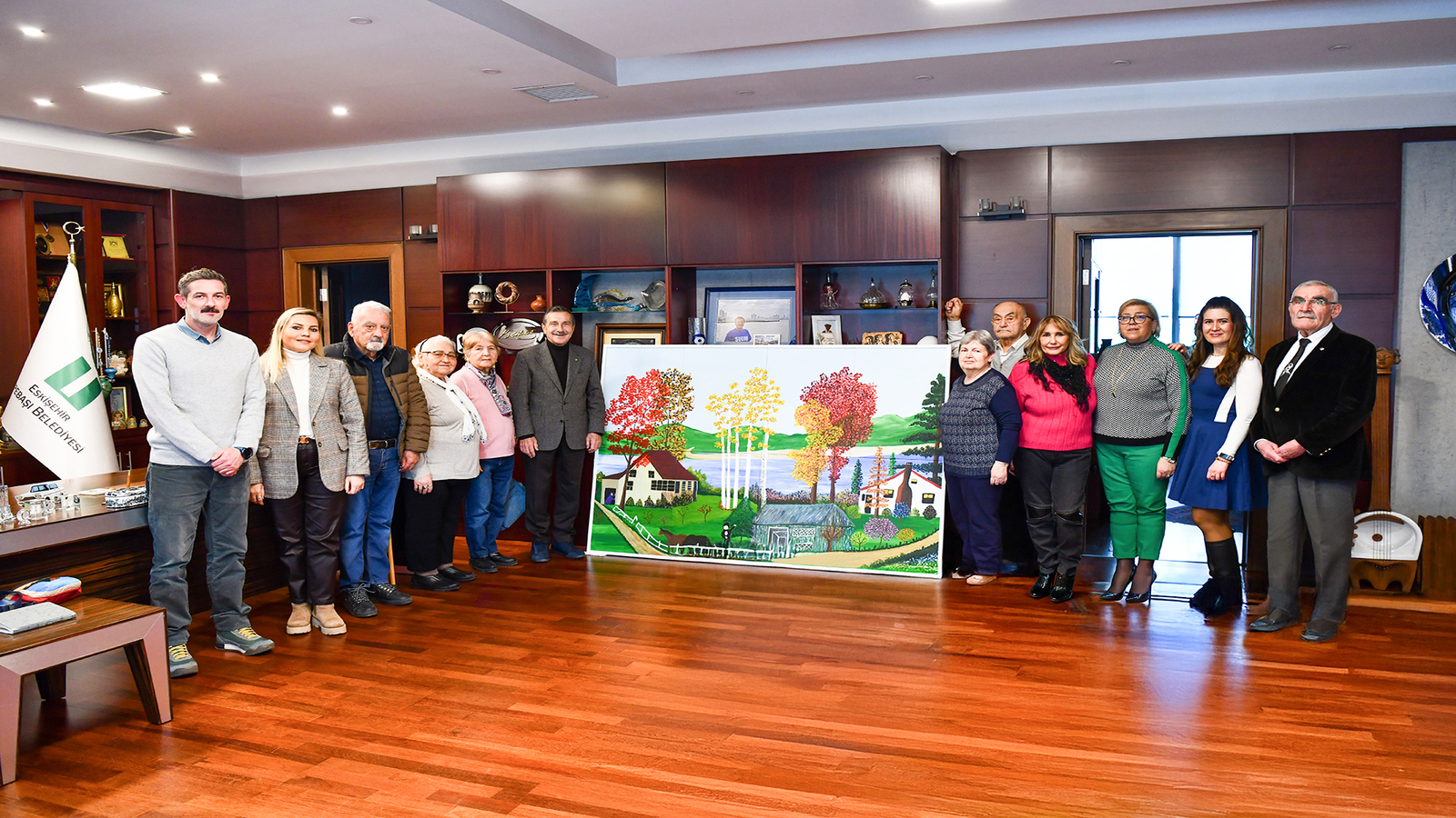 Öte yandan merkez sakinleri, resim atölyesi saatlerinde grup çalışması olarak yapmış oldukları 8 ayrı parçadan oluşan resmi Başkan Ataç’a hediye etti.