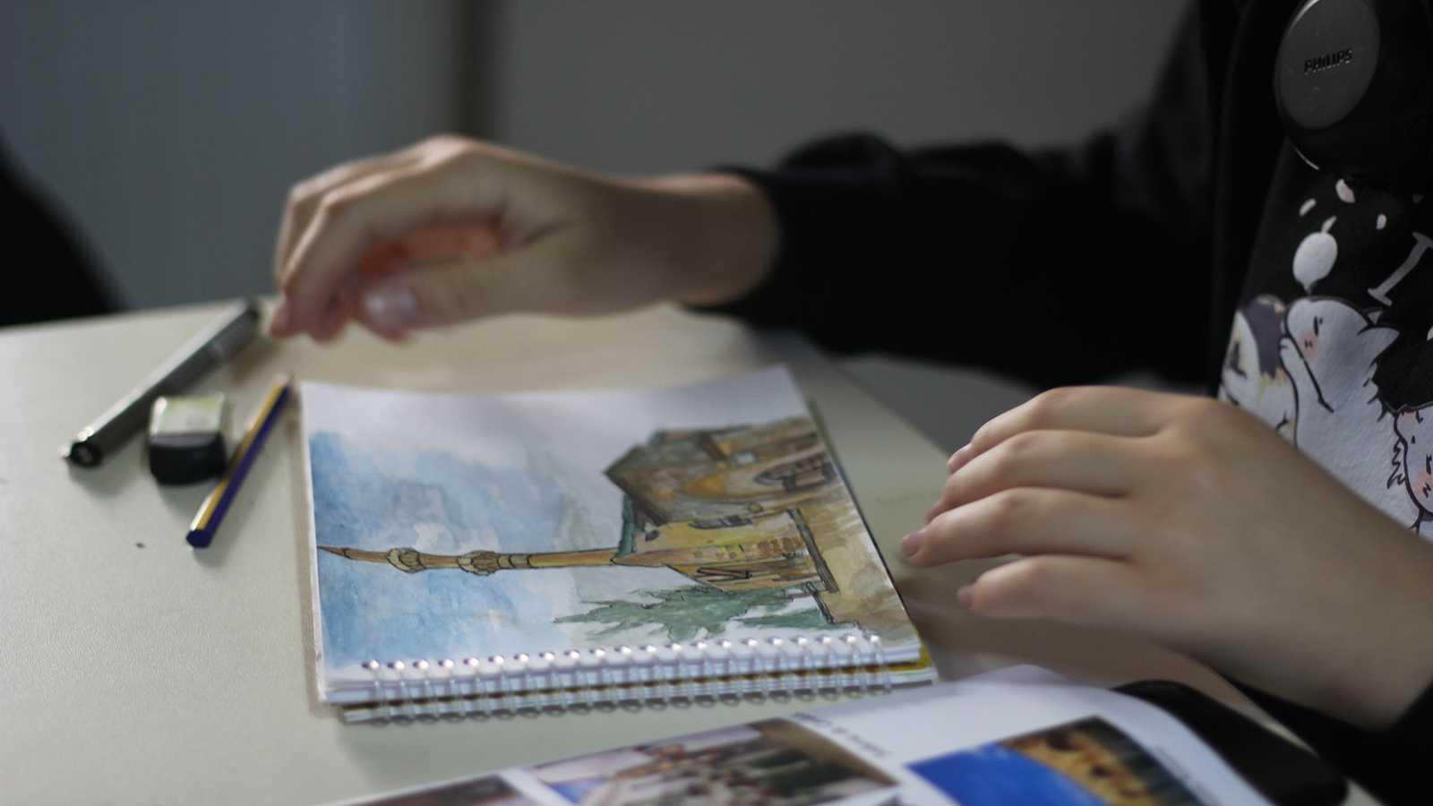 Zeynep Gül Bağan’ın eğitmenliğindeki atölyede katılımcılar, başta Eskişehir, Nebraska, Saratov, Quebec, Antep, Paris, Kurtuba, Ürdün, Porto, Ohrid ve Seul olmak üzere 11 farklı şehri eskiz metotlarıyla defterlerine çizdi.