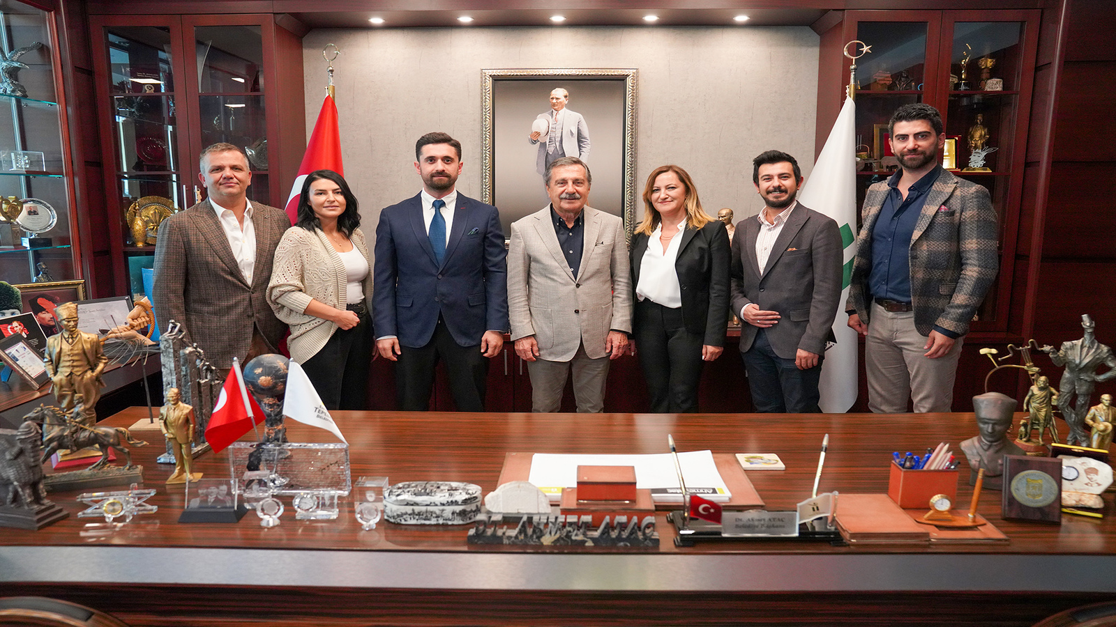 Son olarak Başkan Ataç, göreve yeni gelen 9. Bölge Eskişehir Eczacı Odası Mustafa Çelik ve yönetim kurulu üyelerini makamında ağırladı. Ziyarette Çelik, oda faaliyetleri ve hayata geçirmeyi planladıkları projeler hakkında Başkan Ataç’a bilgi verdi.
