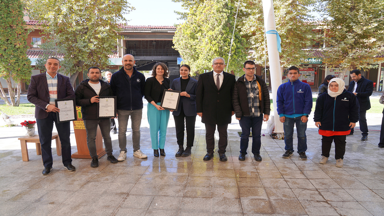 Konuşmaların ardından özel öğrenciler Başkan Ataç ve Başkan Küpeli’ye teşekkür çiçeği takdim etti. Program, EOSB Engelliler Montaj Atölyesi’ne istihdam desteği sağlayan firmalara teşekkür belgelerinin sunulması ile sona erdi.