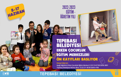 Tepebaşı Belediyesi Erken Çocukluk Eğitim Merkezi için yeni dönem ön kayıt işlemleri başladı. Merkezler için ön kayıt işlemleri 8-17 Haziran tarihleri arasında gerçekleştirilecek. Merkezlerde, 36-57 ay arasındaki, tuvalet eğitimini tamamlamış çocukların kaydı alınacak. Tepebaşı Belediyesi yetkilileri de kontenjanların sınırlı olduğunu, dolması durumunda kesin kayıtların kura ile belirleneceğini kaydetti. Kayıtlar hakkında detaylı bilgi almak isteyen veliler, Yaşam Köyü’nde bulunan Aşağı Söğütönü Erken Çocukluk Eğitim Merkezi’ne 0 (222) 314 07 80 / 8001, Tepebaşı Belediyesi Merkez Bina’da bulunan merkeze ise 0 (222) 211 40 00 / 4106 numaralı telefondan ulaşabiliyor.