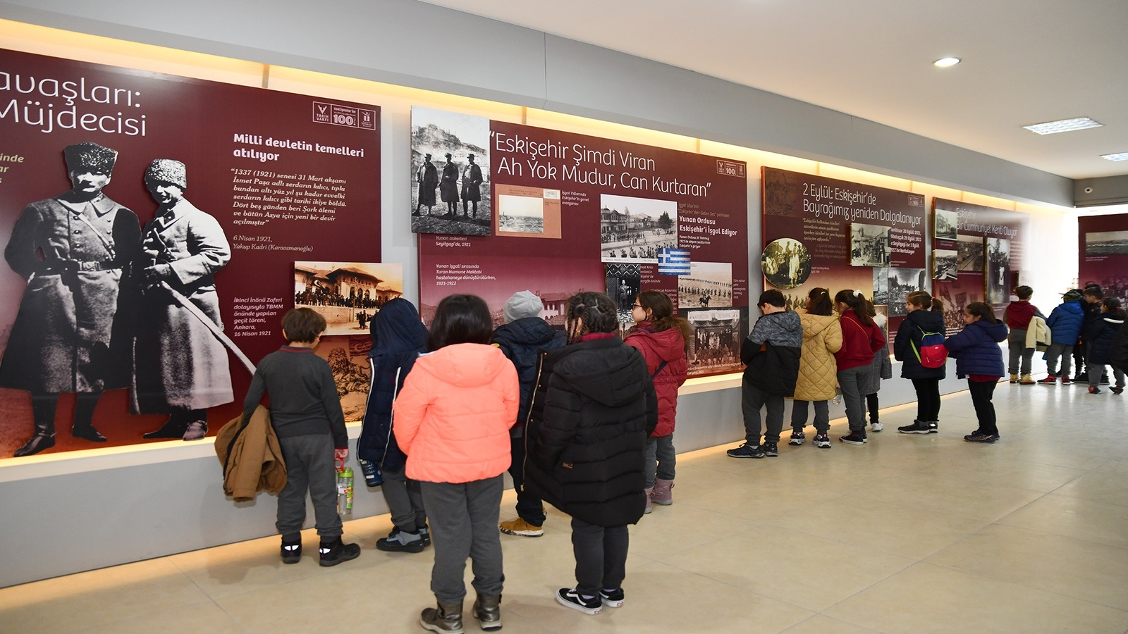 Milli Mücadele’de Eskişehir ve 100. Yılında Eskişehir’in Kurtuluşu sergisi, Eskişehir’in uğradığı işgallerden verilen mücadelelere, Mustafa Kemal Atatürk’ün Eskişehir’e ilişkin tespitlerinden İnönü Savaşları’na kadar pek çok tarihi olayı, görsel zenginlikler ile ziyaretçilerine anlatıyor. Eskişehirli vatanseverlerin Milli Mücadele ile bütünleşmesini aktarıldığı sergi, 1 yıl boyunca ziyaretçilere açık kalacak. 7’den 70’e kent halkı da sergiyi ziyaret ederek Eskişehir tarihine duyduğu merakı gideriyor.