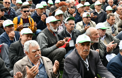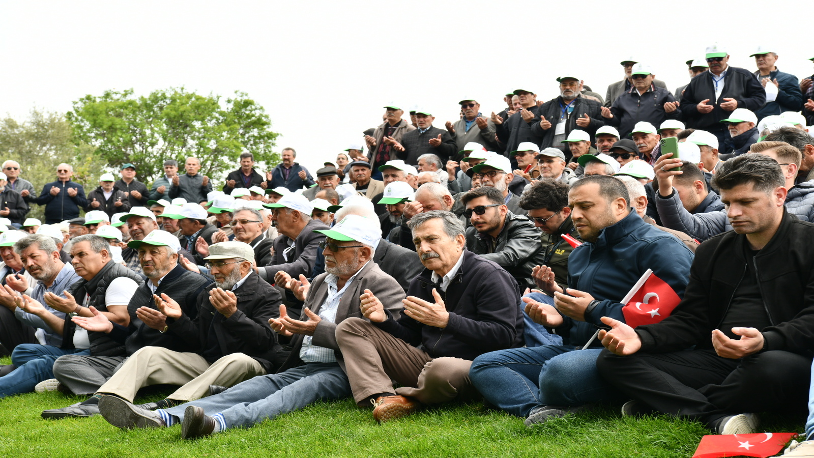 Ellerinde Türk Bayrakları bulunan katılımcılar Başkan Ataç ile hatıra fotoğrafı çektirmelerinin ardından kendisine teşekkürlerini iletti.