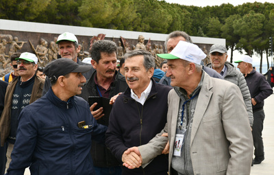 Şehitler Abidesi’nin önünde Eskişehirlilere hitap eden Başkan Ataç, “Eskişehir’in çok değerli, yürekli insanları… Çanakkale’ye hoş geldiniz. Sizler her zaman dik durdunuz, yan yana oldunuz ve bizleri hiçbir zaman yalnız bırakmadınız, bu birliktelik devam edecek. Gelibolu’da Çanakkale Destanı’nın ruhunu yaşıyoruz. Eğer bu destan yazılmasaydı, bugün bu güzel vatanda yaşayamıyor olacaktık. Öncelikle bu destanın yazılmasının mimarı, liderimiz Mustafa Kemal Atatürk’ü ve yaklaşık 250 bin şehidimizi saygıyla anıyorum, nur içinde yatsınlar. Buradan bakınca o kadar güzel görünüyorsunuz ki. Burası Türkiye’nin en kutsal toprakları, her metrekarede şehit kanı var. Onlara ne kadar minnet etsek azdır. Emperyalist güçler donanmaları ve tüm orduları ile ülkemize saldırdılar, onları burada durdurduk. 18 Mart’ta deniz savaşları zaferimiz ile sonuçlanıyor. 25 Nisan 1915’te karadan saldırmaya başladılar. Çarpışmalar o kadar şiddetli ve yakın mesafedeki… Düşmanın nefesi duyuluyor, metrekareye 6 bin kurşun düşüyor, havada birbirine saplanan binlerce kurşun var. İbrahim Naci isimli yedek subayımız, askerlerini kaybettikten sonra çarpışmaya girmeden önce, helalleşmeden kendi cenaze namazlarını kılıyor. Burada biz onlara haklarımızı helal etmeye geldik. Işıklar içinde yatsınlar, böyle bir destan ile ülkemiz kurtuldu. Bir yazarın da dediği gibi, Çanakkale Zaferi, Kurtuluş Savaşı’nın önsözüdür. Orada da yine Mustafa Kemal Atatürk ve arkadaşları bu vatanı kurtardılar. Onlara ne kadar dua etsek azdır, yolumuz Mustafa Kemal Atatürk’ün yolu olsun” şeklinde konuştu.