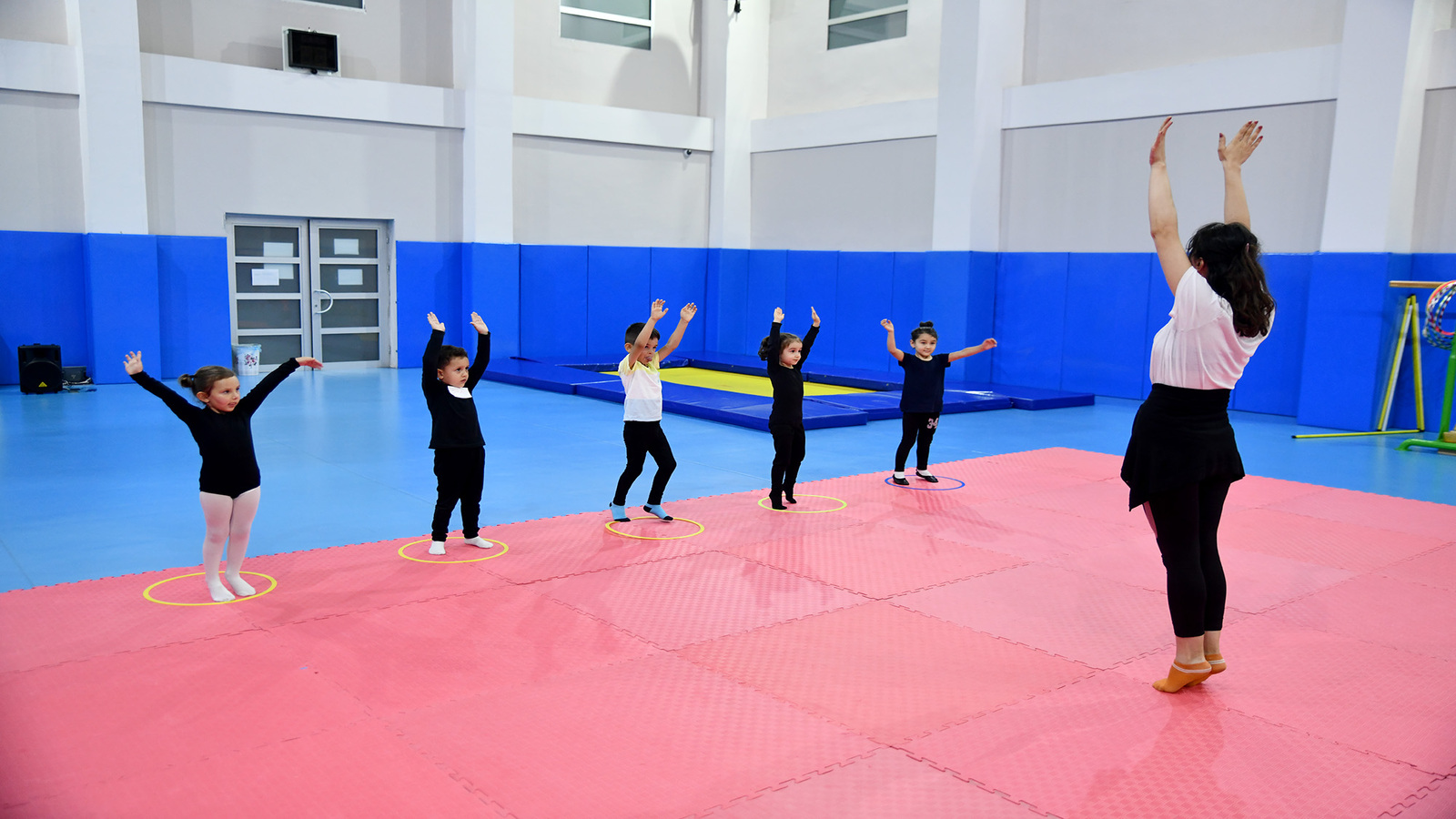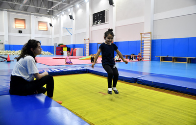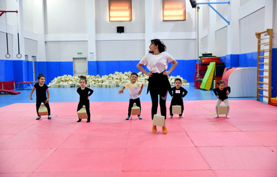Hizmete girdiği günden bu yana ilgi odağı haline gelen tam donanımlı jimnastik salonunda, yeni dönem eğitimleri kapsamında 4-9 yaş arası 260 öğrenci 12 grup halinde spor yapıyor.