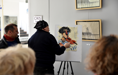 Ayrıca sergi salonunda Efgan Beyaz tarafından atık kağıda resim çizilirken Geri Dönüşüm Atölyesi ekipleri tarafından atölye düzenlendi.