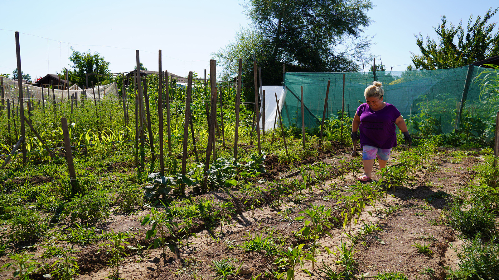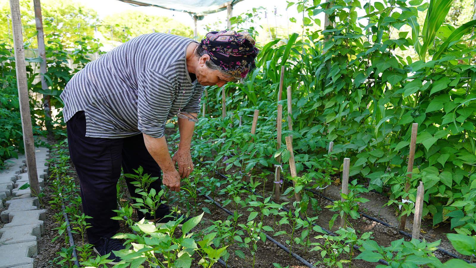 Necla Ekmenoğlu, “Burada zamanım çok güzel geçiyor, çok mutluyuz. Sabah geliyoruz çapamızı yapıyoruz, öğleden sonra suluyoruz. Çok memnunuz hayatımızdan. Her şeyi ekiyoruz buraya. Bu hizmet bizim için çok iyi. Şeker hastalığı vardı bende yok oldu. Allah başkanımızdan razı olsun” ifadelerini kullandı.