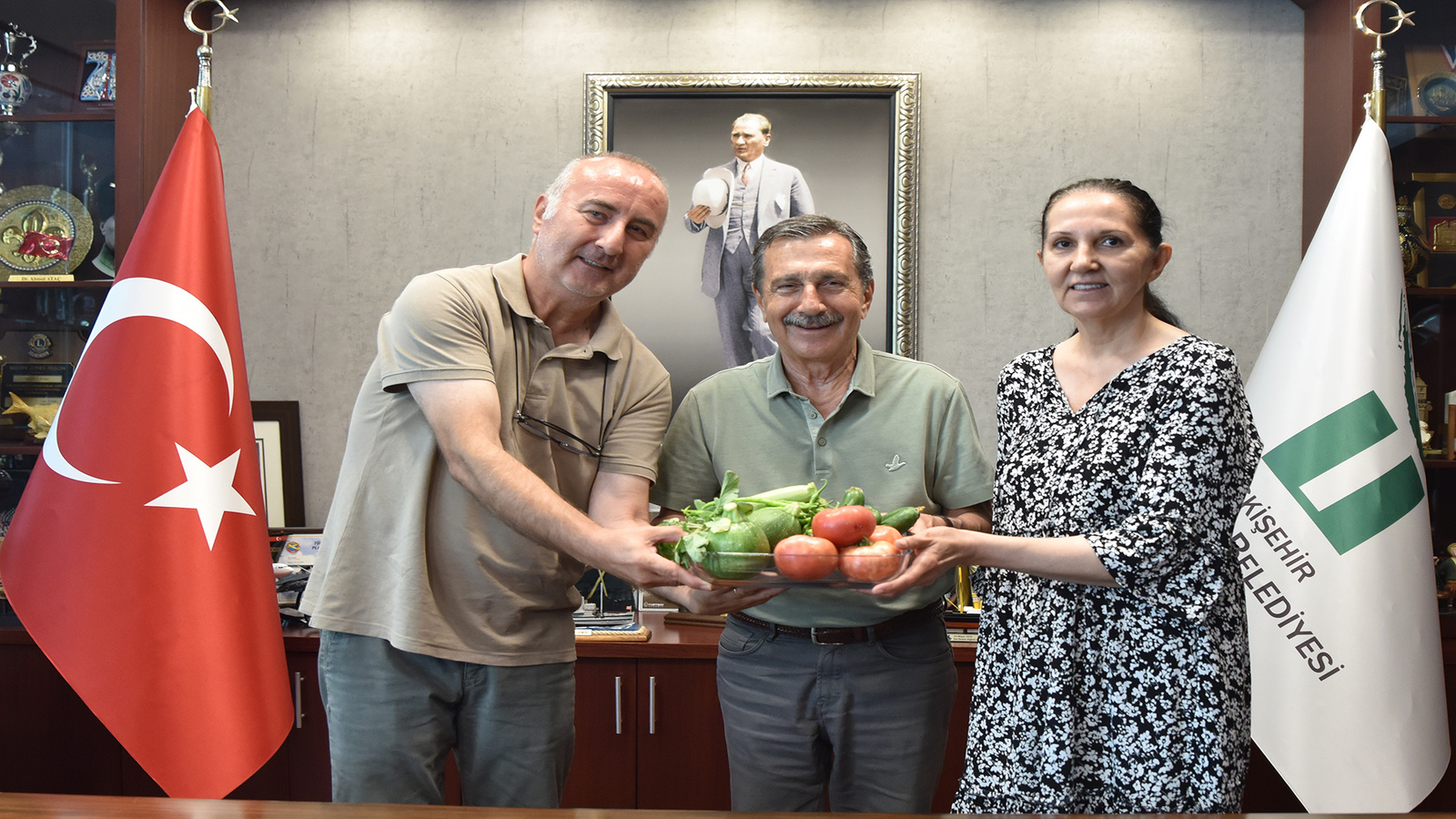 Tepebaşı Belediyesi’nin Gönüllü Bahçelerinde sebze yetiştiren vatandaşlar toprakla uğraşmanın keyfini sürüyor. Batıkent Gönüllü Bahçelerinde 26 çeşit sebze yetiştirmeyi başaran emekli Güler ailesi de çok mutlu olduklarını belirterek, Tepebaşı Belediye Başkanı Dt. Ahmet Ataç’a teşekkür ziyaretinde bulundu.