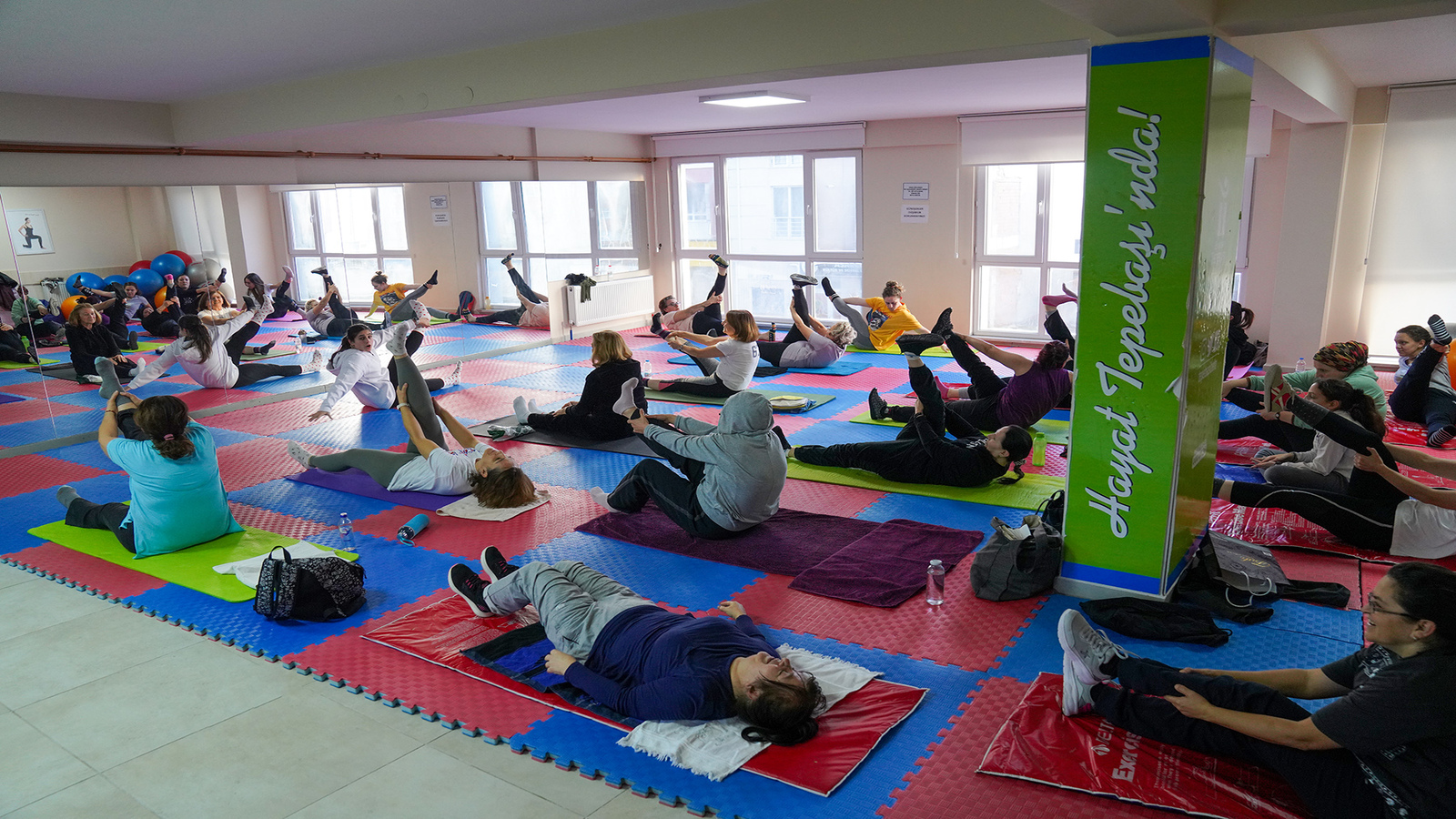 Tepebaşı Belediyesi Belde Evleri’nde ücretsiz olarak düzenlenen pilates kursuna katılan kadınlar, sağlıklı şekilde vakit geçiriyor.