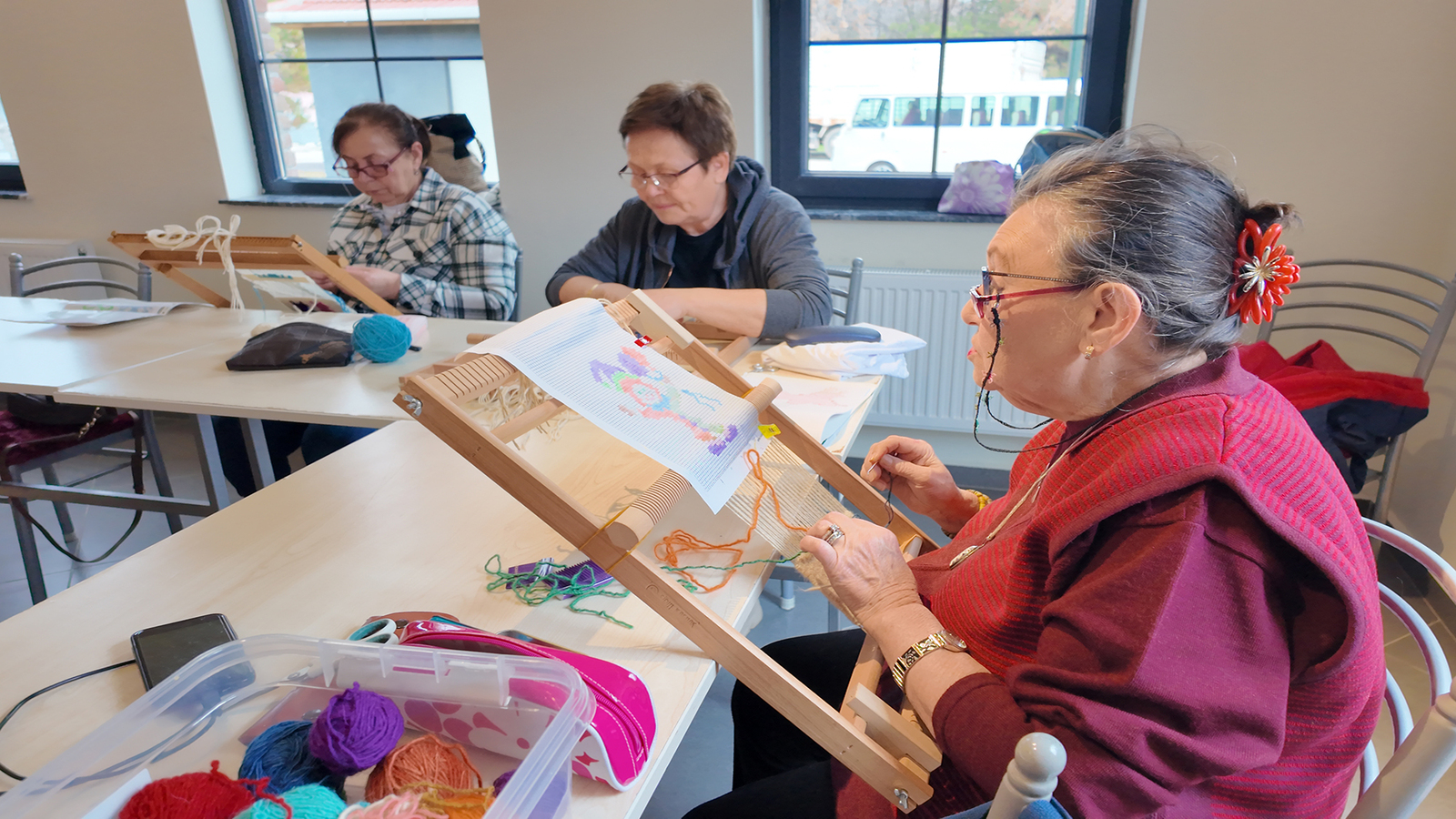 Belde Evleri’nde düzenlenen minyatür kilim ve şal dokuma kursu da Eskişehirli kadınların ilgisi ile devam ediyor. Mustafa Kemal Paşa Belde Evi’nde düzenlenen minyatür kilim ve şal dokuma kursu da haftada bir gün 33 kursiyerin katılımıyla sürüyor. Uzman eğitmenler eşliğinde kursa katılan kadınlar, yöresel veya özgün figürleri dokumayı öğreniyor.