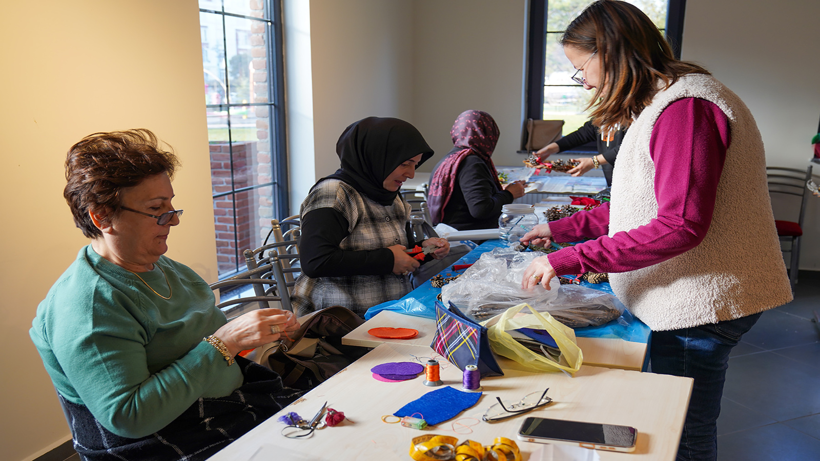 Belde Evleri’nde düzenlenen dekoratif el sanatları kursu da Eskişehirli kadınların ilgisi ile devam ediyor. Mustafa Kemal Paşa Belde Evi’nde düzenlenen dekoratif el sanatları kursuna katılan kadınlar, birçok teknik ile hediyelik eşya yapmayı öğreniyor. Kadınlar, kurs ortamında el becerilerini geliştirirken sosyalleşmenin de keyfini yaşıyor. Verimli ve keyifli biçimde vakit geçirdiklerini belirten kadınlar, emeği geçenlere teşekkürlerini iletiyor.