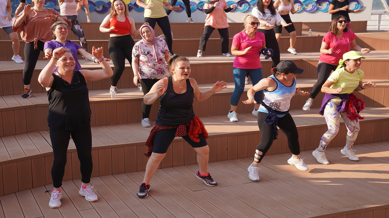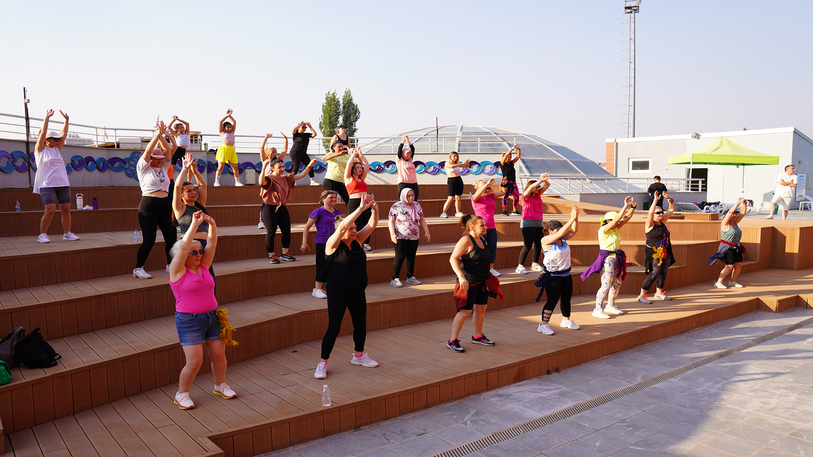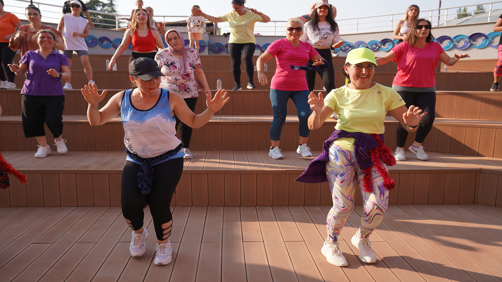 Su Sporları Merkezi’nde düzenlenen programlar kapsamında zumba eğitimlerine 18 yaş üzeri kadınlar katılıyor. Zumba için kayıt yaptıran 200 kadın, merkezin terasında, açık havada, uzman eğitmen ile dans eşliğinde spor yaparak, daha sağlıklı bir yaşam sürmeyi hedefliyor.
