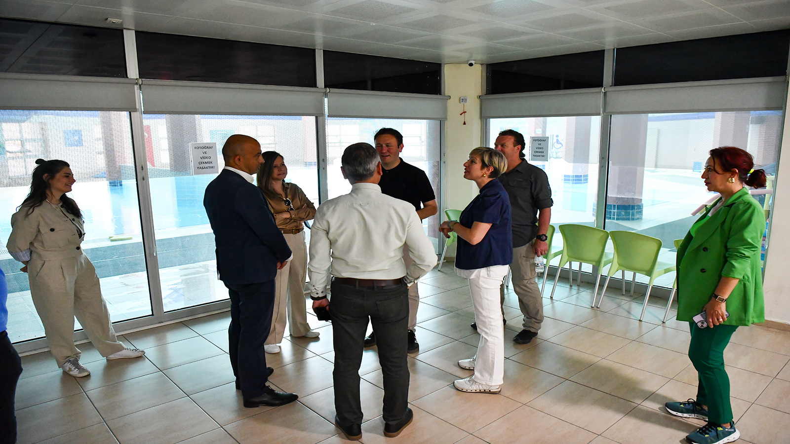 Melih Savaş Yaşam Köyü’nde Karabağlar heyeti, Alzheimer Konukevi’ni ve İbrahim Ethem Kesikbaş Montaj Atölyesi’ni gezerek bilgiler aldı. Ardından heyet, Leed Sertifikalı akıllı bina olma özelliğine sahip Su Sporları Merkezi’ne gelerek, binanın teknik yapısını ve özelliklerini yerinde inceledi ve notlar aldı.