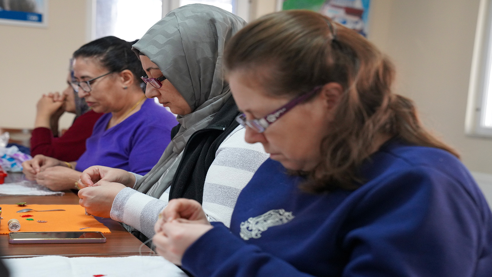 Nurten Aras, “Gereken her şeyi yapıyoruz. Bileklik, nazar boncuğu yapıyoruz. Hocamız tüm teknikleri öğretiyor. Bizim için çok güzel. Stres atıyoruz, çok zevkli” ifadelerini kullandı.