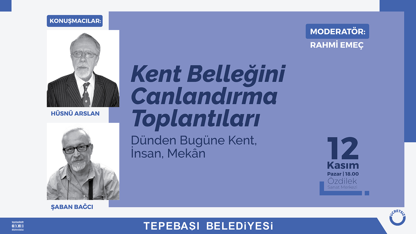 Bu kapsamda düzenlenecek Kent Belleğini Canlandırma Toplantıları Özdilek Sanat Merkezi’nde gerçekleşecek. 12 Kasım Pazar günü saat 18.00’de düzenlenecek toplantının moderatörlüğünü Rahmi Emeç yapacak. Konuşmacılar Şaban Bağcı ve Hüsnü Arslan toplantıda ‘Dünden Bugüne Kent, İnsan, Mekan’ konularını konuşacak.