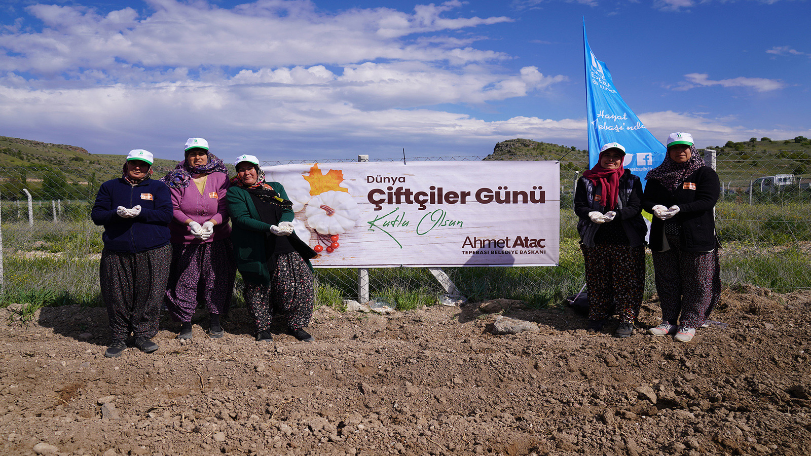Kızılinler Mahallesi’nde Tepebaşı Belediyesi’ne ait yaklaşık 3 dönümlük alana 14 Mayıs Çiftçiler Günü kapsamında ata tohumundan bal kabağı ekimi yapıldı. Bölge üreticilerinden alınan ata tohumu bal kabağı ekimi Tepebaşı Belediye Başkanı Ahmet Ataç’ın katılımıyla gerçekleşti. Büyük bir coşkuyla karşılanan Başkan Ataç, ilk olarak traktöre binerek tarlayı sürdü. Ardından ise Başkan Ataç üretici kadınlarla birlikte sürülen alana ata tohumu bal kabağı ekimini yaptı. Tohumların ekilmesinden sonra ise bereketi temsilen alana yerleştirilen “Bereket Kütüğünün” açılışı gerçekleştirildi.