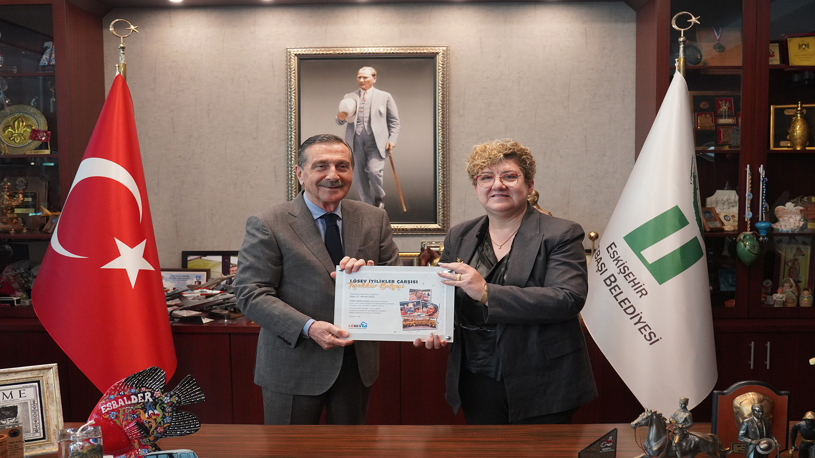 Bu kapsamda Başkan Ataç’ı ziyaret eden LÖSEV Bölge Koordinatörü Yelda İlker, 26 Nisan’da TÜYAP Fuar Kongre Merkezi’nde düzenlenen fuarda kurulan LÖSEV İyilikler Çarşısı’na olan katkılarından dolayı teşekkür plaketi takdim etti. İlker, “Tepebaşı Belediyesi’nin destekleri çerçevesinde İyilikler Çarşısı’nda LÖSEV’e kayıtlı çocuk, yetişkin hastalarımız ve aileleri, bedelsiz alışveriş yaptılar ve ihtiyaçlarını giderdiler. Bu, bizim için çok önemliydi. Başta Başkanımız Sayın Ahmet Ataç olmak üzere Kültür İşleri Müdürü Serkan Şengül’e ve Sosyal Yardım İşleri Müdürü Murat Çevik’e teşekkürlerimizi sunuyoruz” dedi.