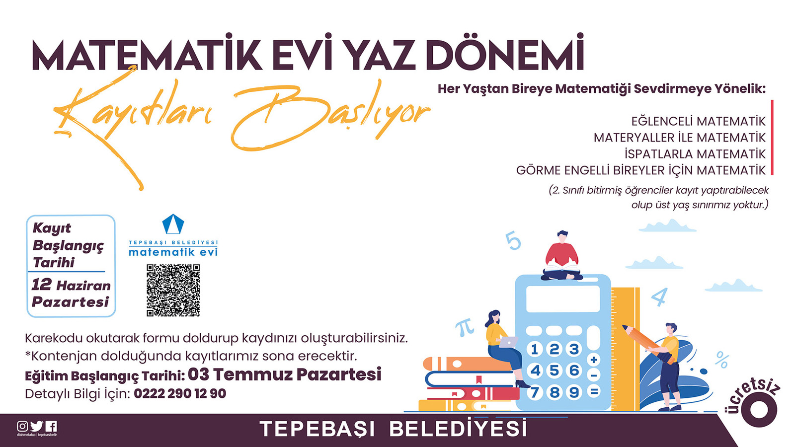 Tepebaşı Belediyesi Matematik Evi’nde farklı tekniklerin uygulandığı yaz dönemi matematik kursları başlıyor. Kurs kayıtları, 12 Haziran Pazartesi günü başlayacak.