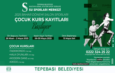 Bahar dönemi çocuk kursları için de başvurular başladı. Çocuklar için tekvando (7-16 yaş), halk oyunları (7-11 yaş), modern dans (6-12 yaş) ve aikido (7-16 yaş) branşları yer alıyor.